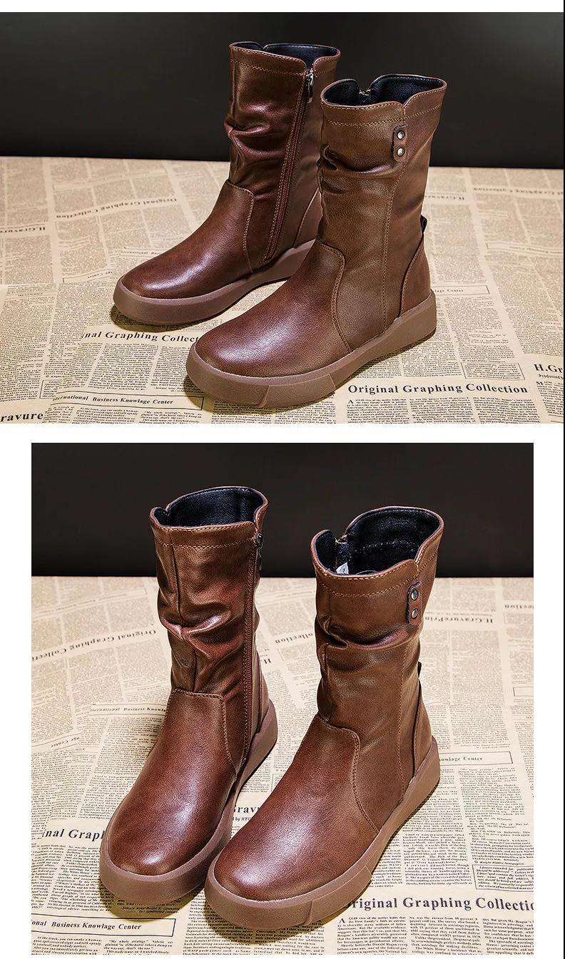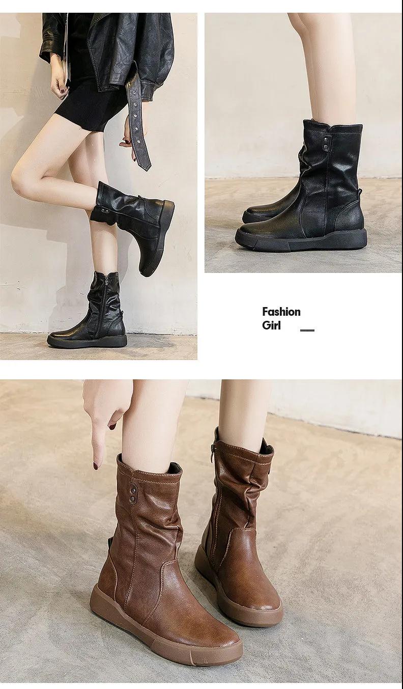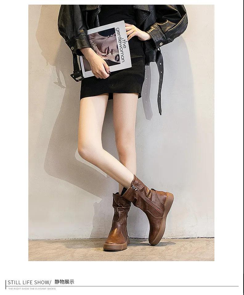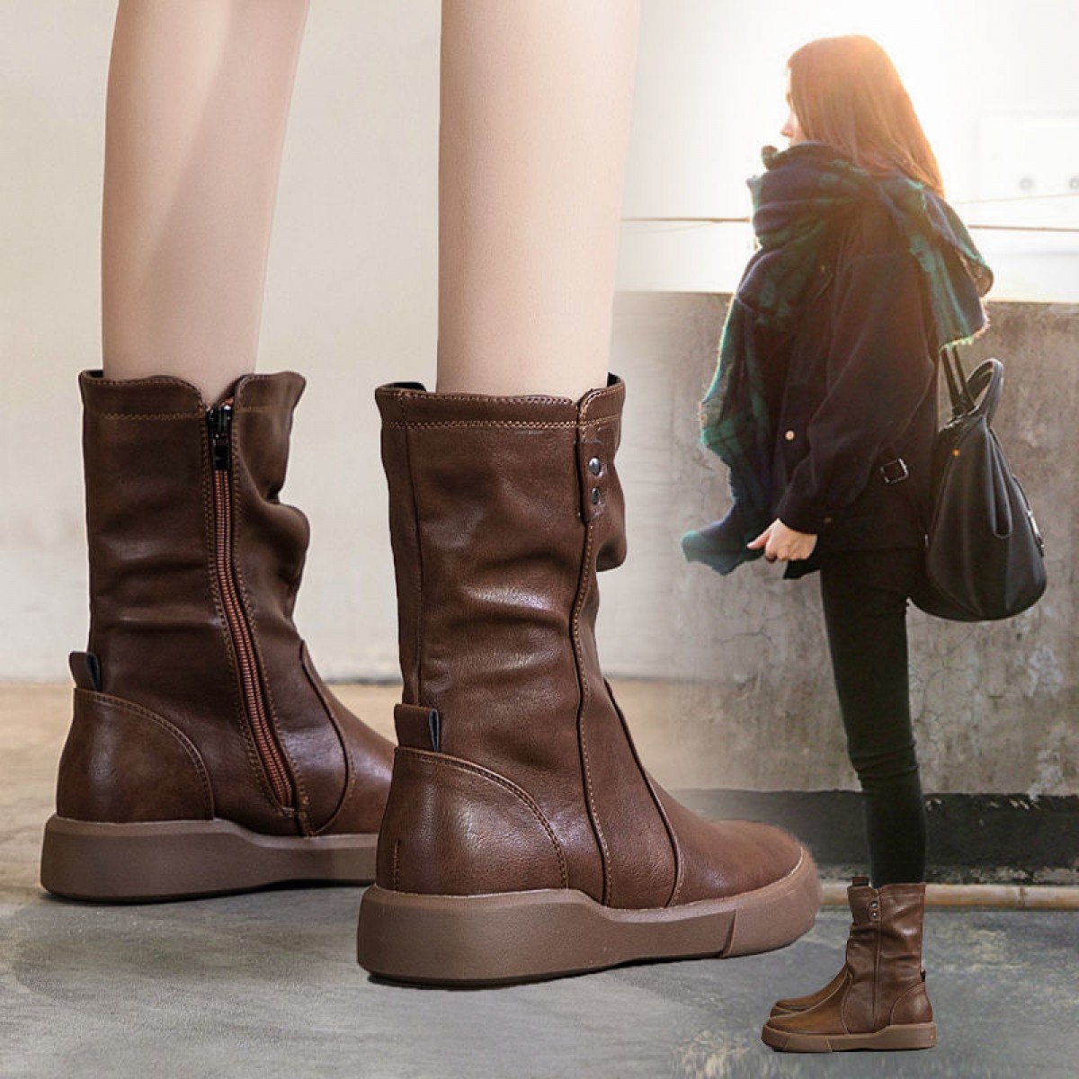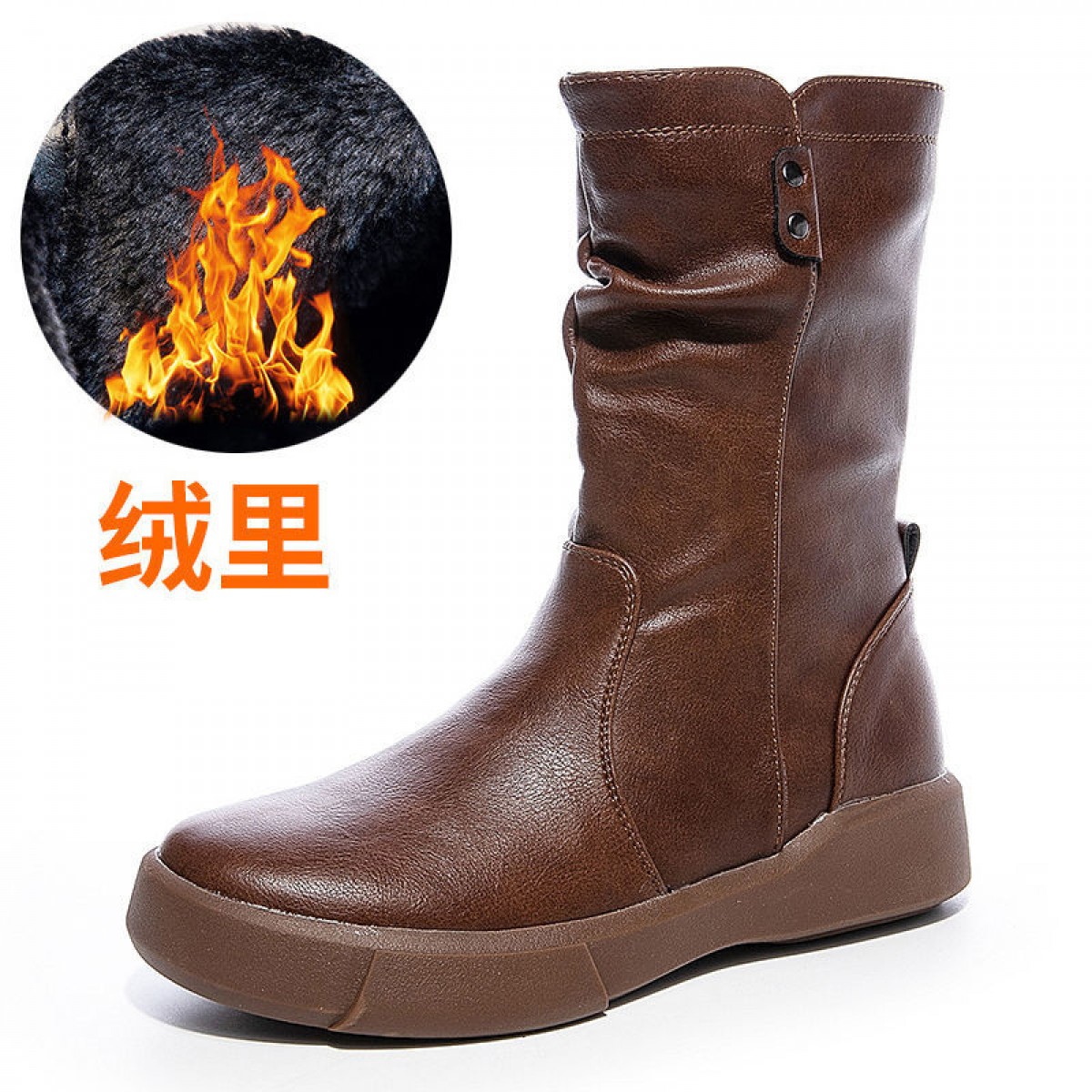 商品名稱:2020秋季新款馬丁靴女英倫風(fēng)平底加絨瘦瘦靴百搭休閑中筒靴子女冬