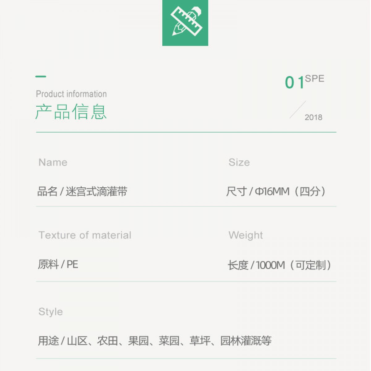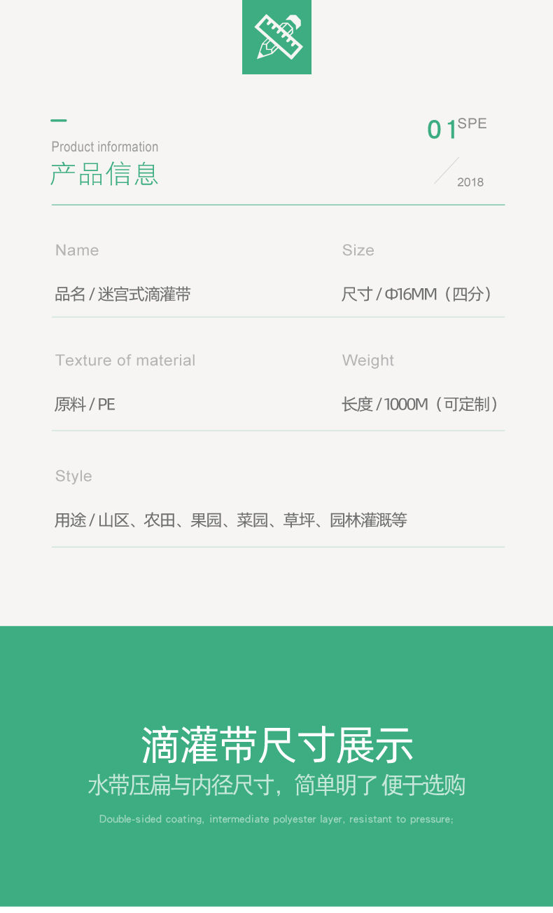 商品名稱:16迷宮式滴灌帶管農(nóng)用滴水管主管自動(dòng)灌溉設(shè)備澆地水帶果園大棚