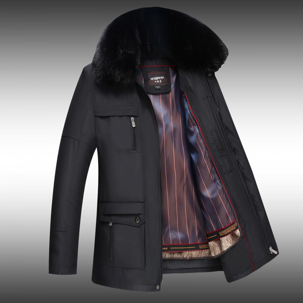 商品名稱:棉衣爸爸裝中老年人冬裝男士加絨加厚中長(zhǎng)款外套爺爺保暖毛領(lǐng)棉服