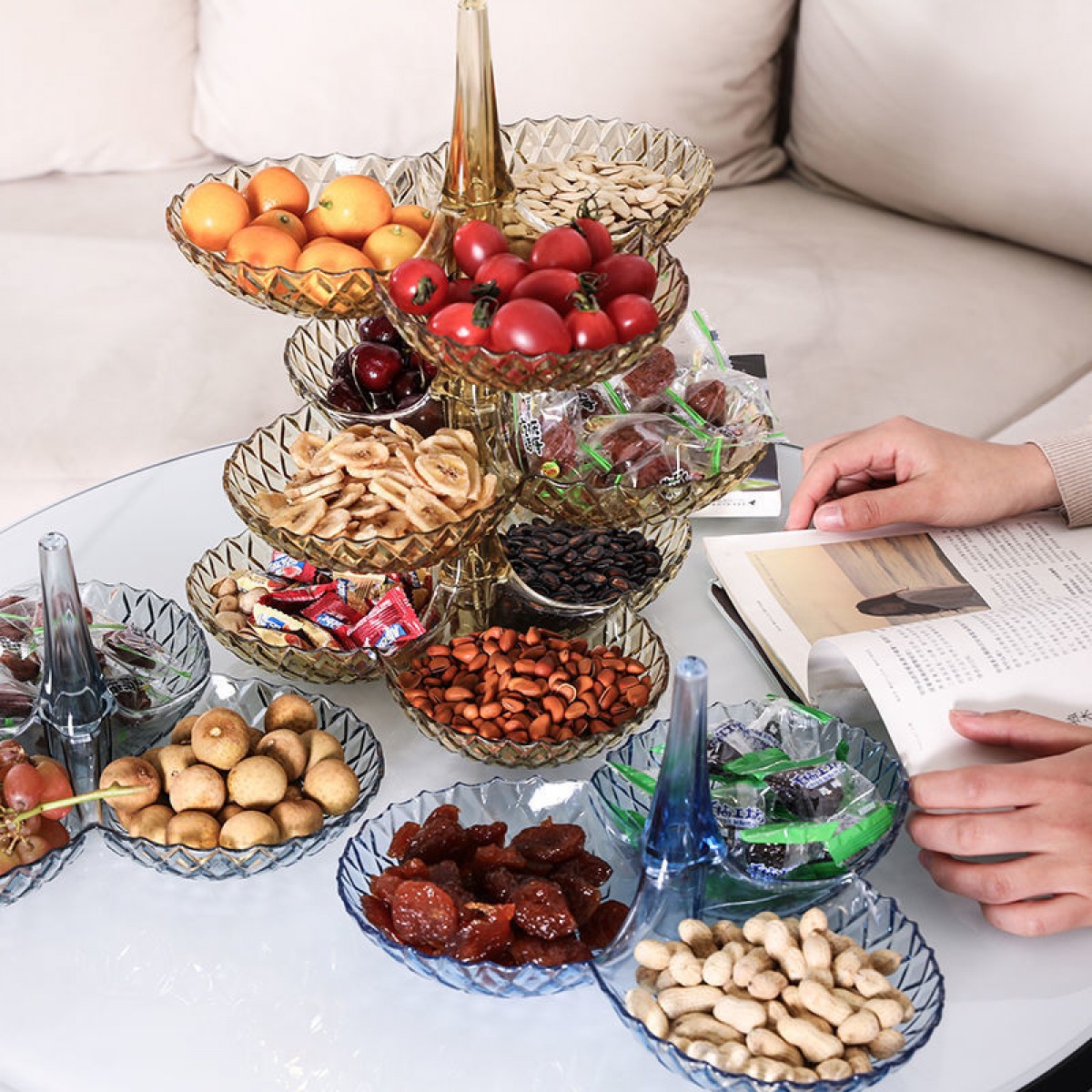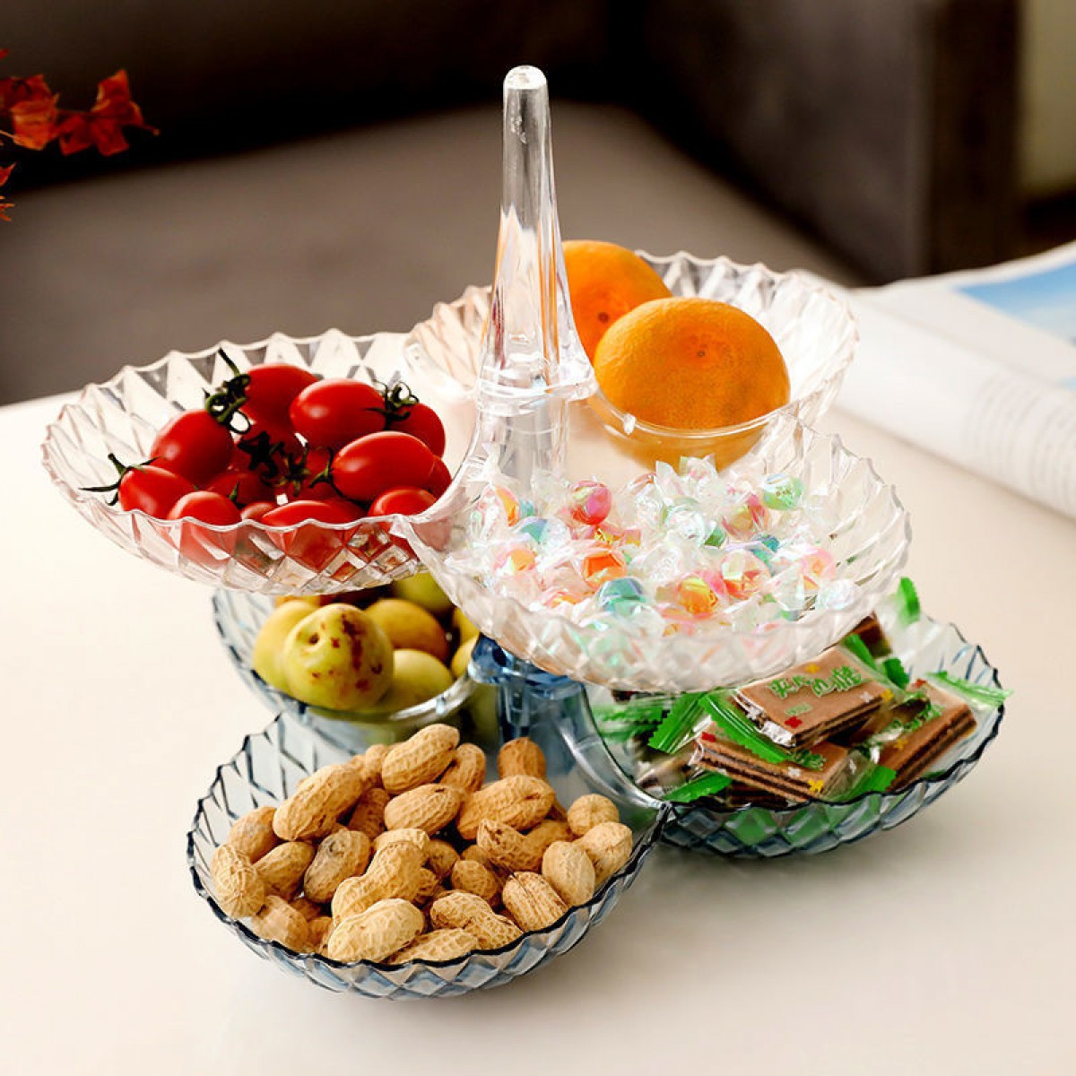 果盤零食客廳茶幾網(wǎng)紅創(chuàng)意時(shí)尚塑料多層水果盤家用新款高檔糖果盤