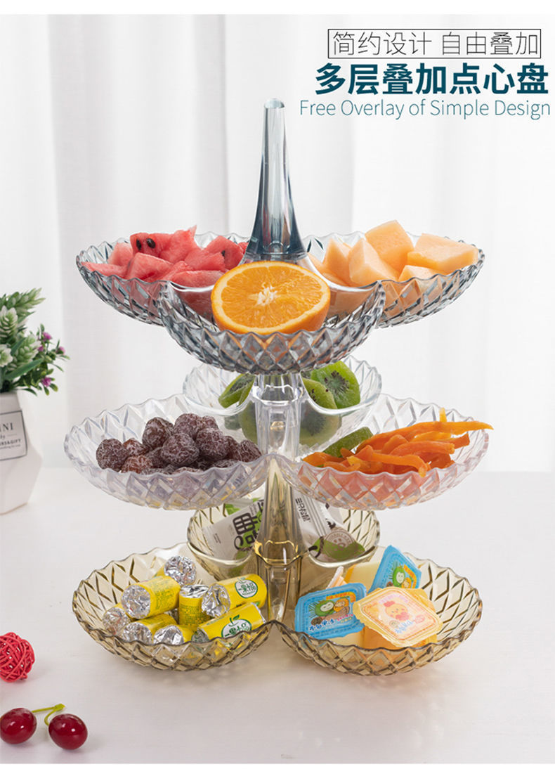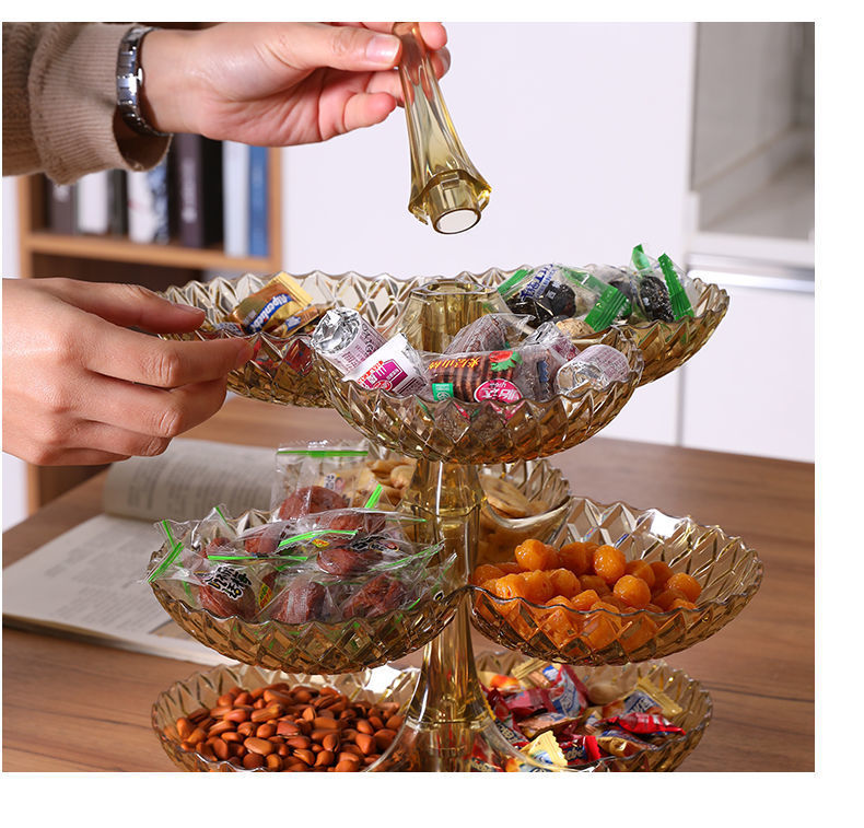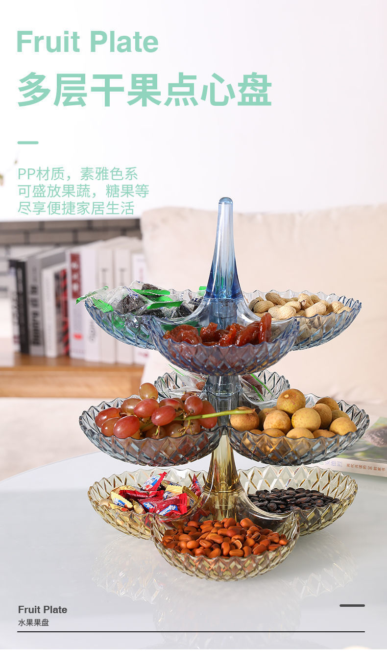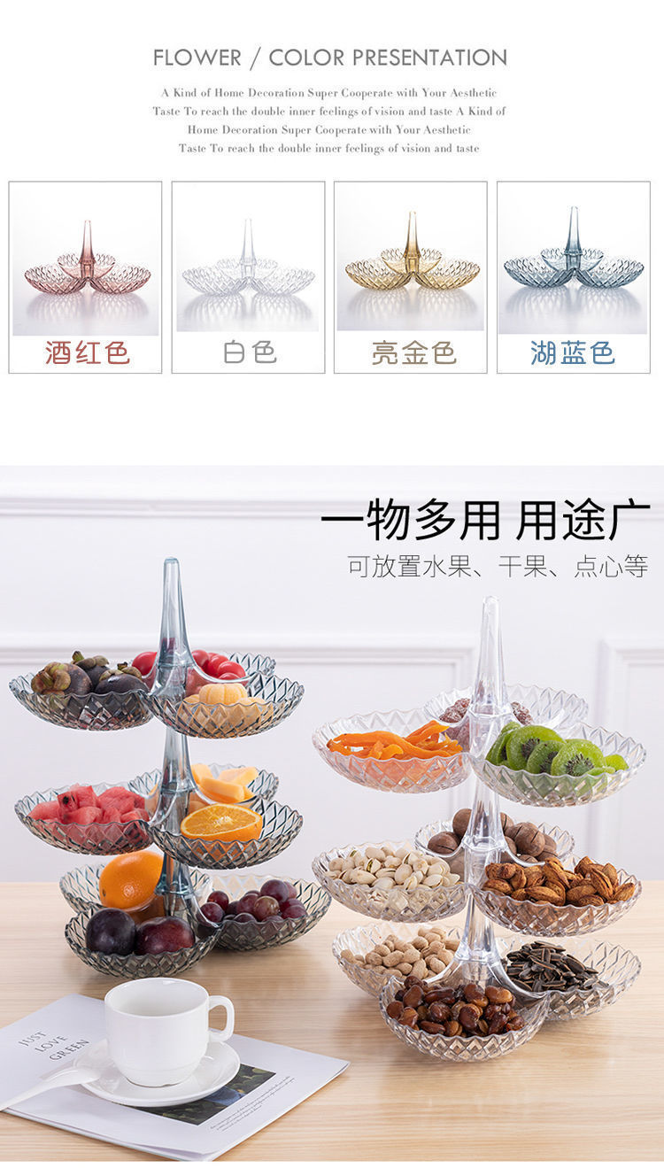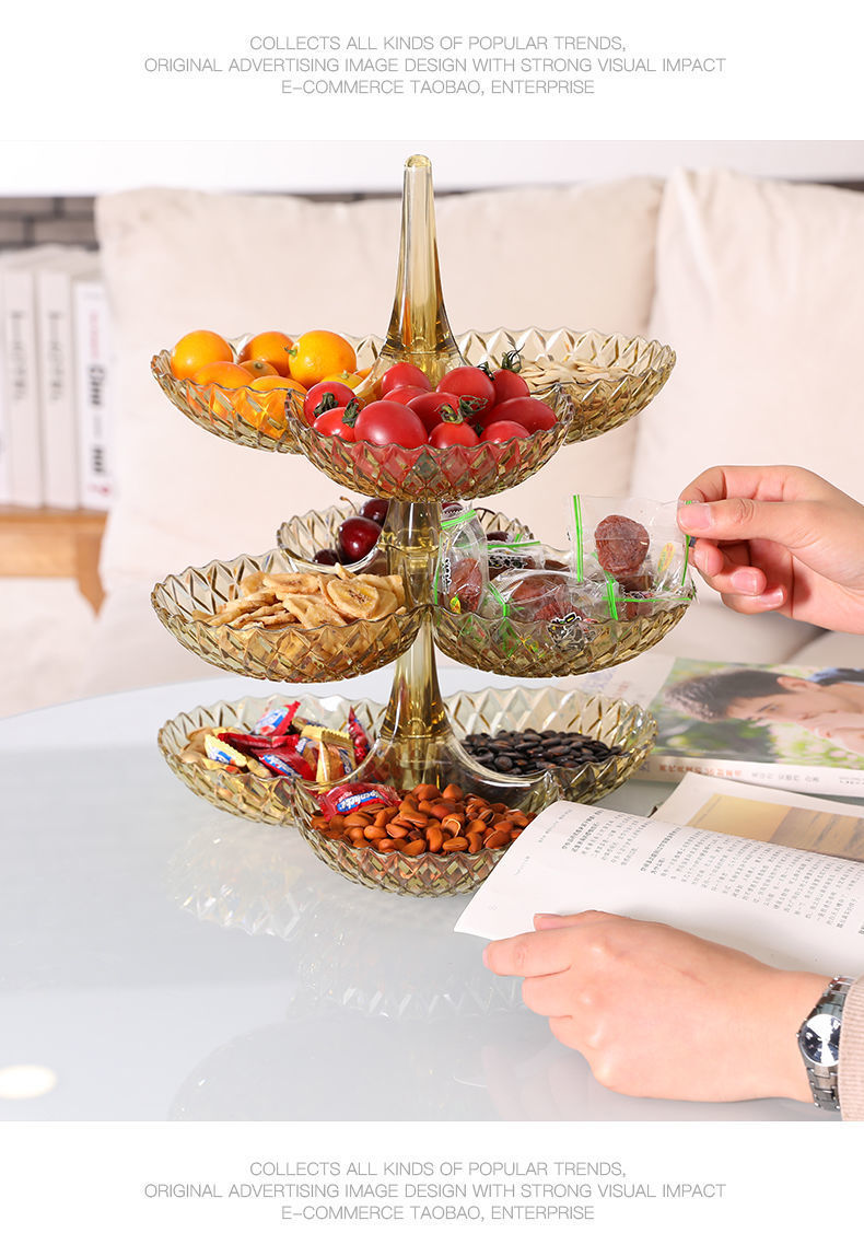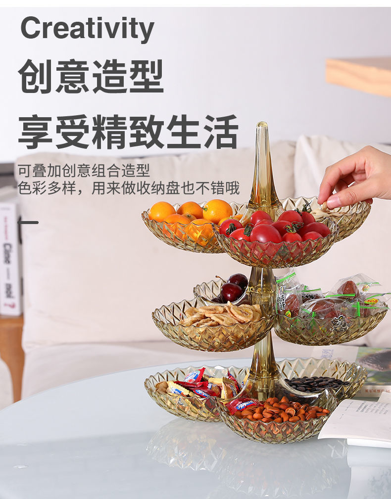 商品名稱:果盤零食客廳茶幾網(wǎng)紅創(chuàng)意時(shí)尚塑料多層水果盤家用新款高檔糖果盤