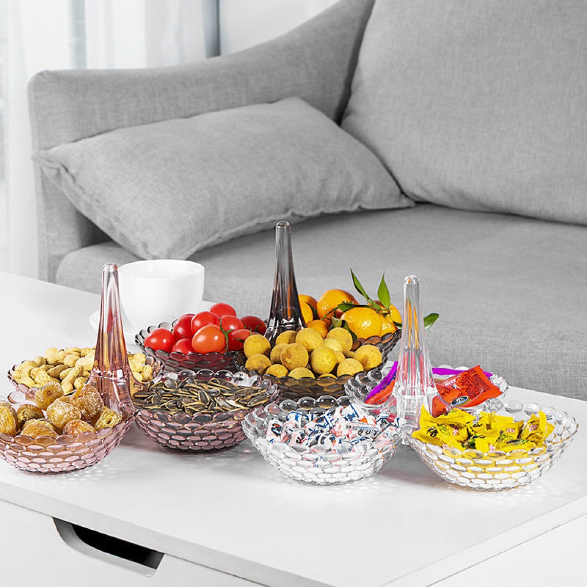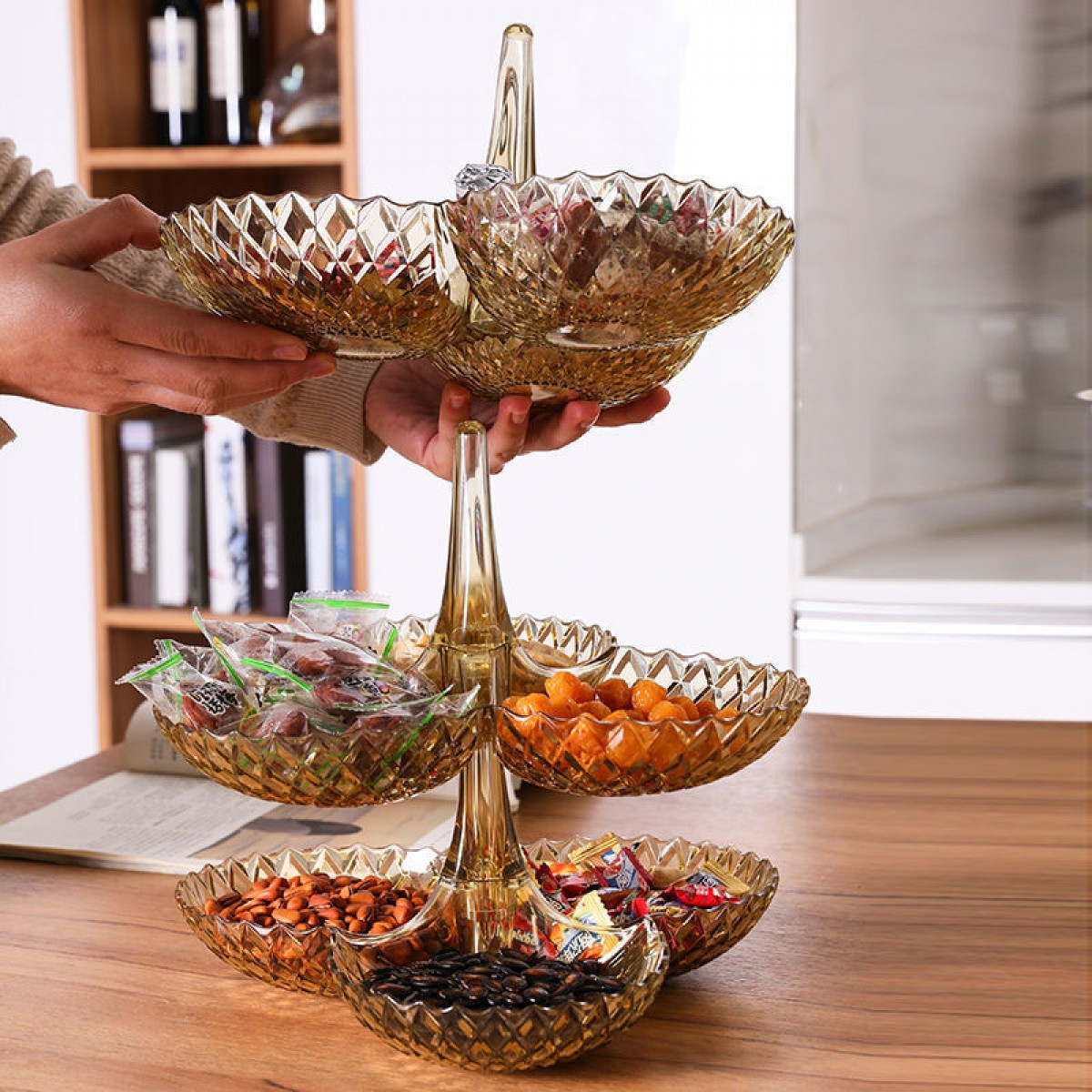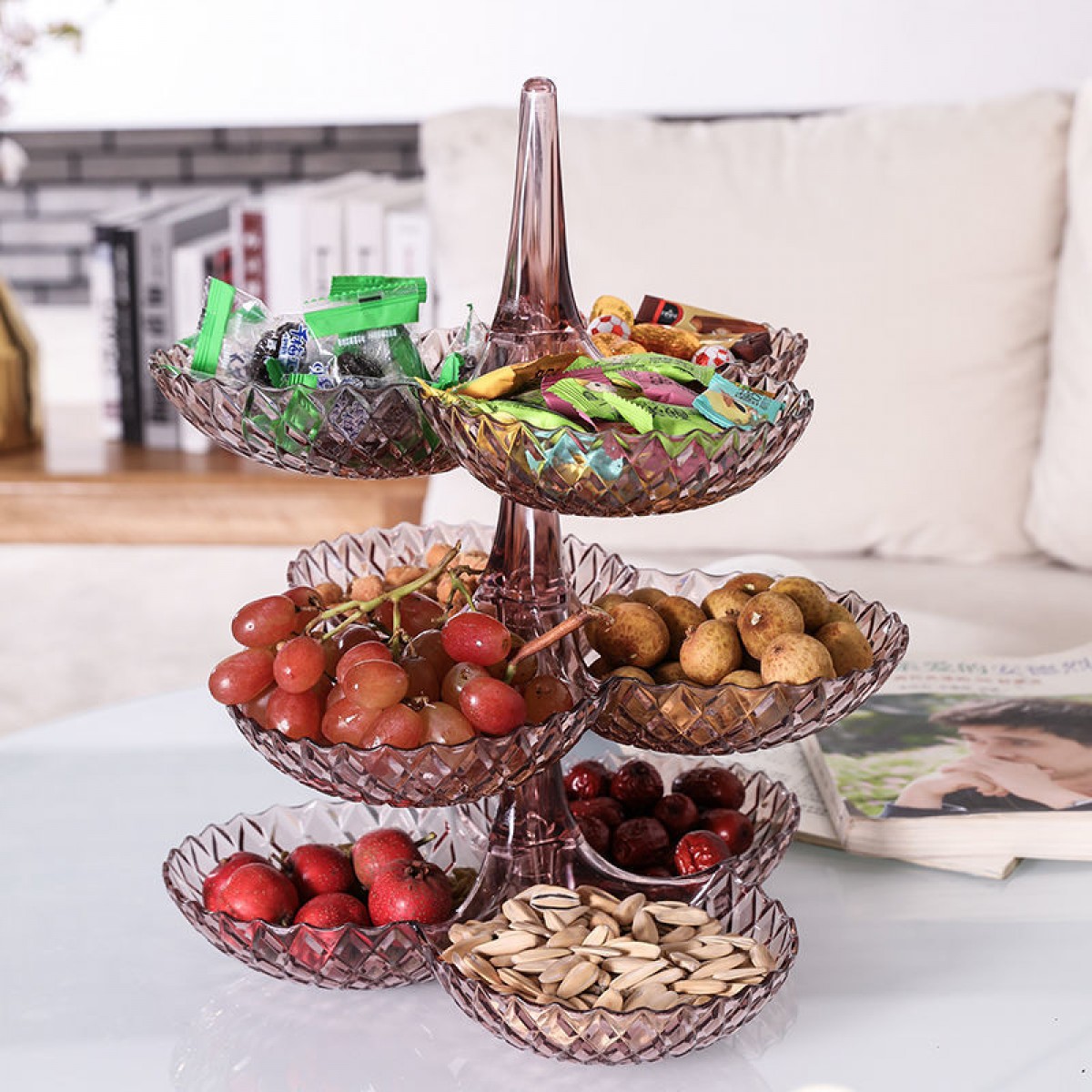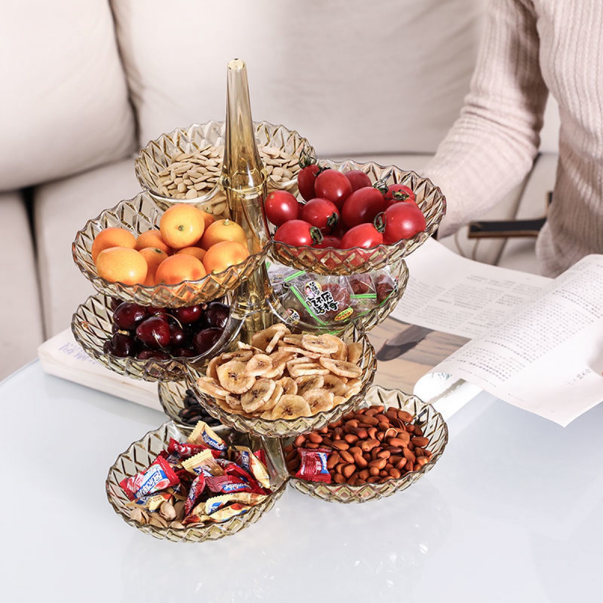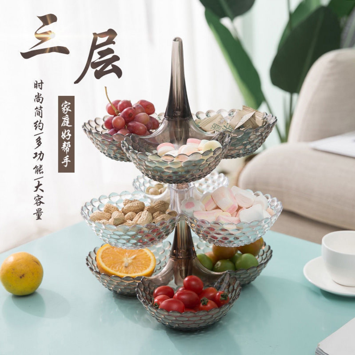 商品名稱:果盤零食客廳茶幾網(wǎng)紅創(chuàng)意時(shí)尚塑料多層水果盤家用新款高檔糖果盤