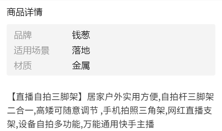 商品名稱:手機直播支架三腳架多功能自拍桿攝影主播抖音戶外落地式拍照神器