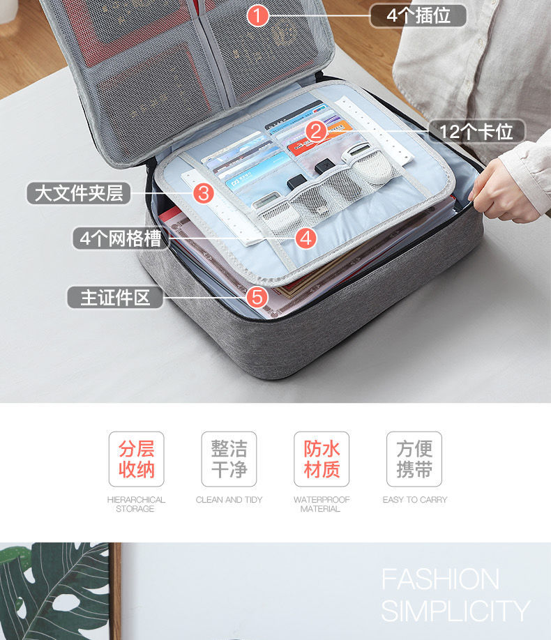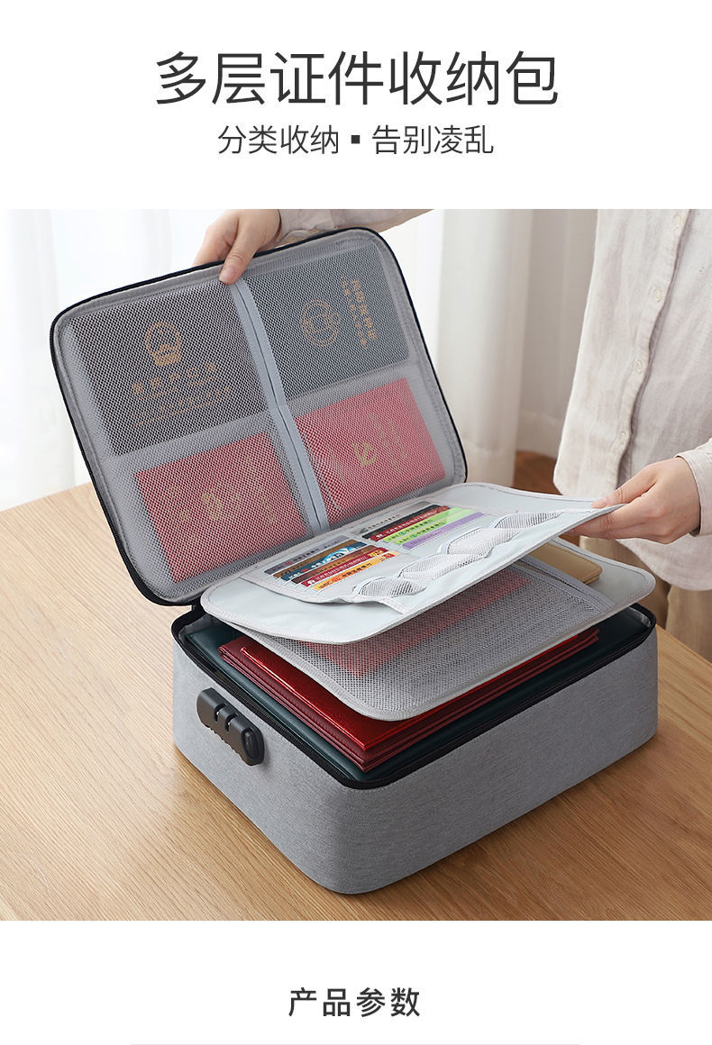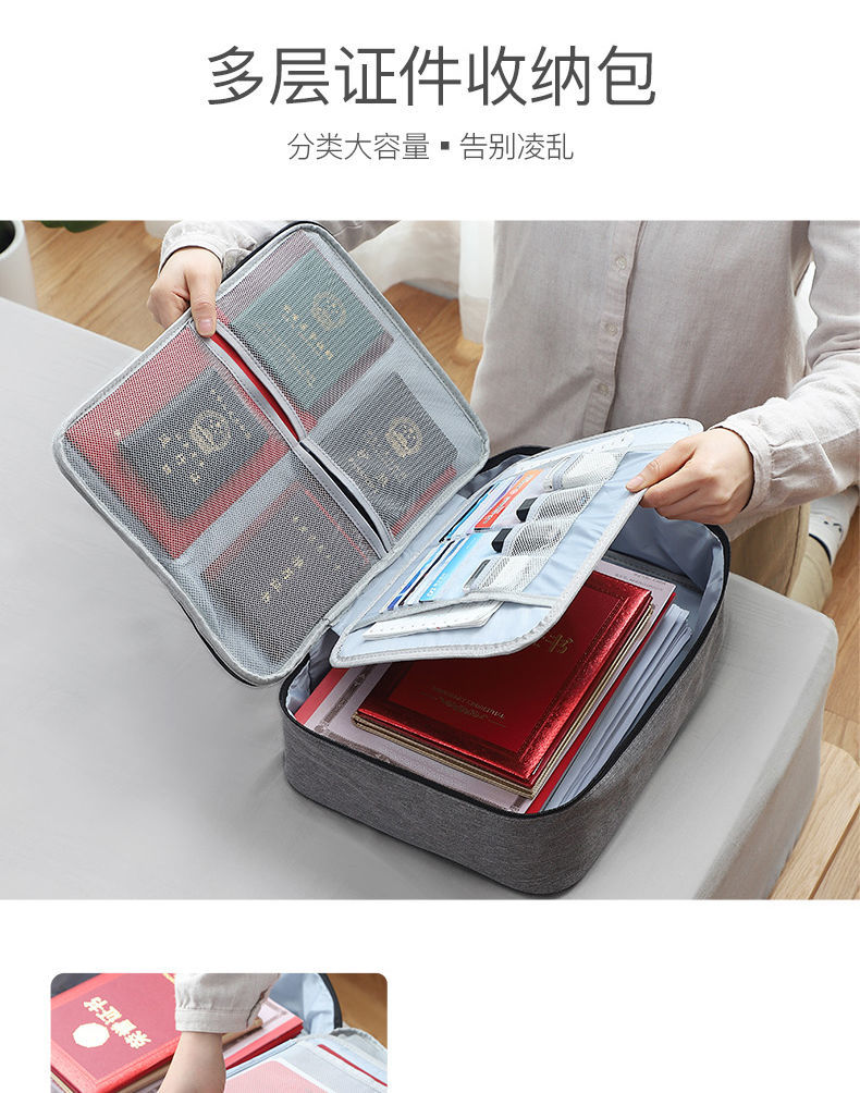 商品名稱:加厚證件收納包盒家用家庭多層大容量多功能箱文件護(hù)照整理袋卡包