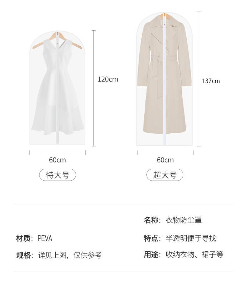 商品名稱:防塵罩衣服防塵袋衣罩大衣防塵袋衣物罩半透明掛衣袋大衣西服套子