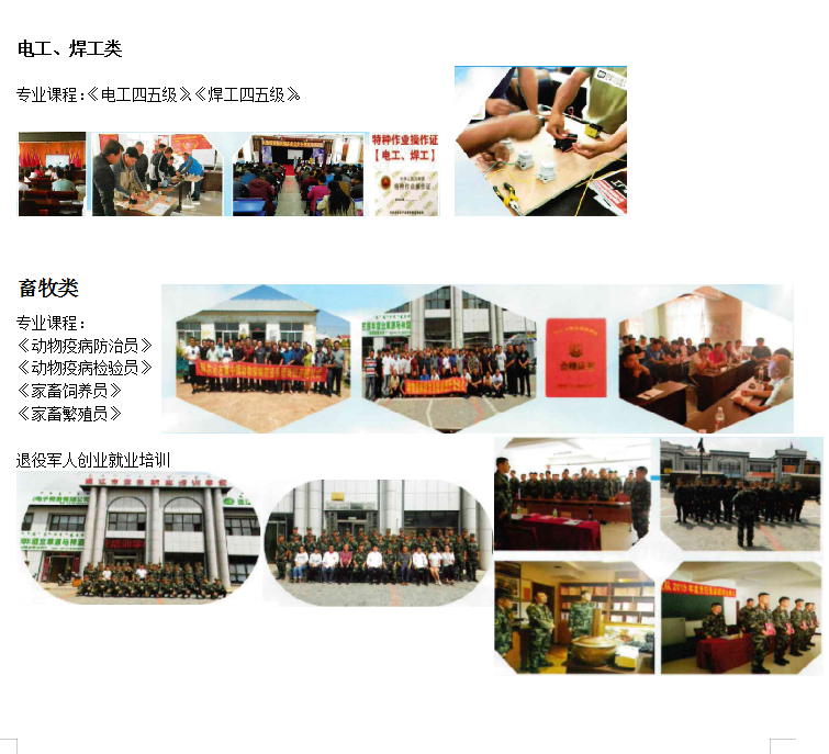 A類260課時(shí)(33天)包括培訓(xùn)工種:中式烹調(diào)師三四五級(jí)、中式面點(diǎn)師三四五級(jí)、西式烹調(diào)師四五級(jí)、西式面點(diǎn)師四五級(jí)、動(dòng)物疫病防治員、動(dòng)物疫病檢驗(yàn)員、家畜繁殖員、電工四五級(jí)、焊工四五級(jí)。