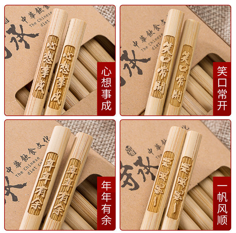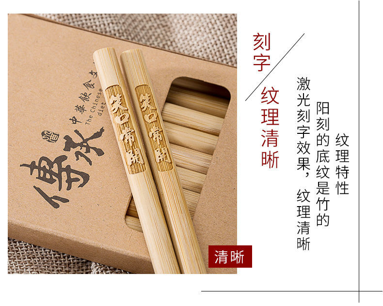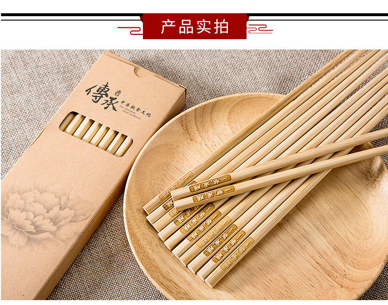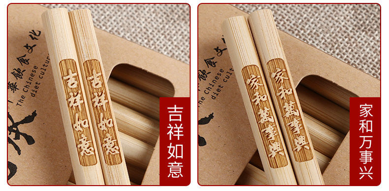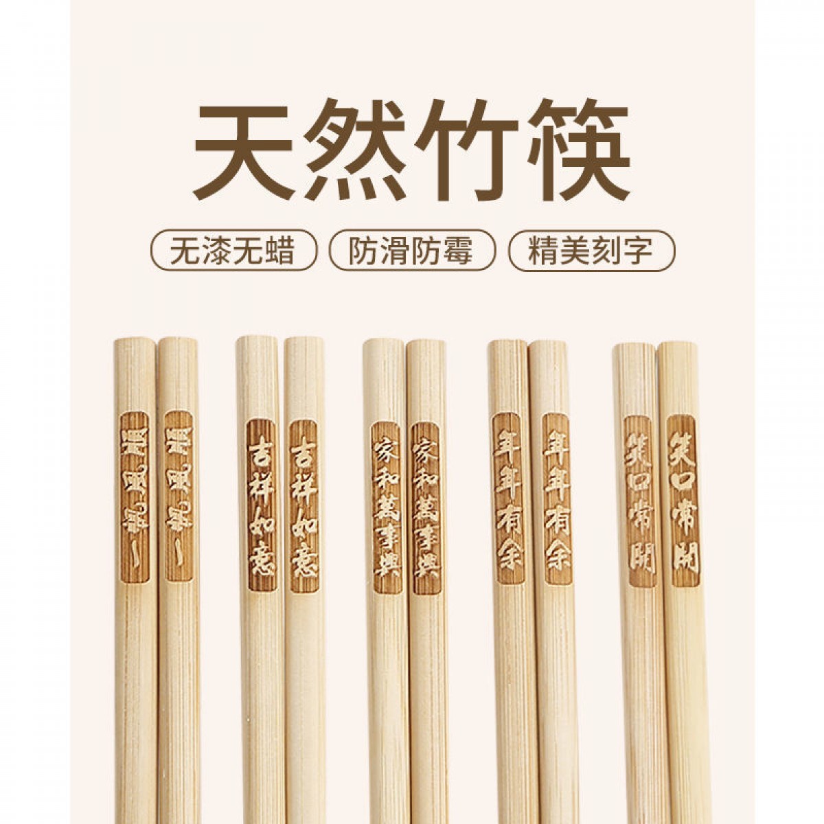 商品名稱:竹筷子家用天然無漆無蠟家庭裝防滑高檔中式ins刻字碳化防霉楠竹