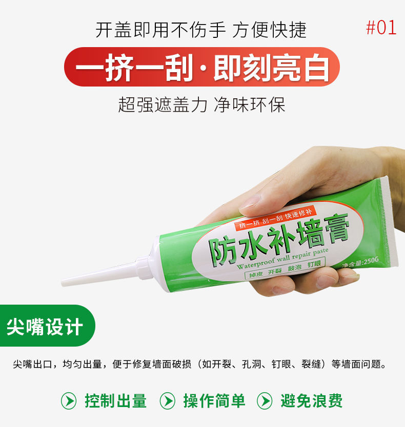 防水補(bǔ)墻膏墻面修補(bǔ)膏白色膩?zhàn)痈嗉矣脡w修復(fù)膩?zhàn)臃鬯ν苛蟽?nèi)墻