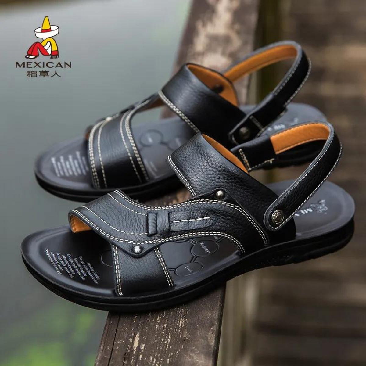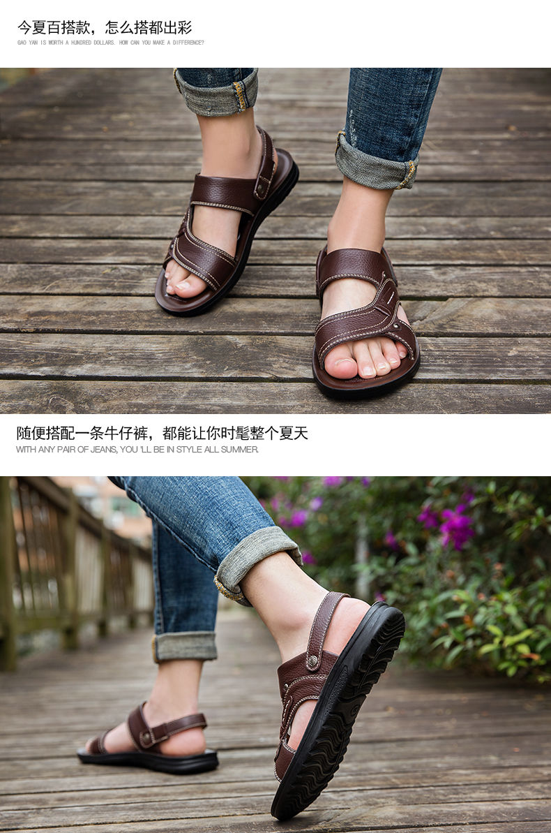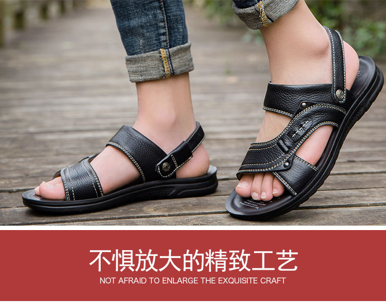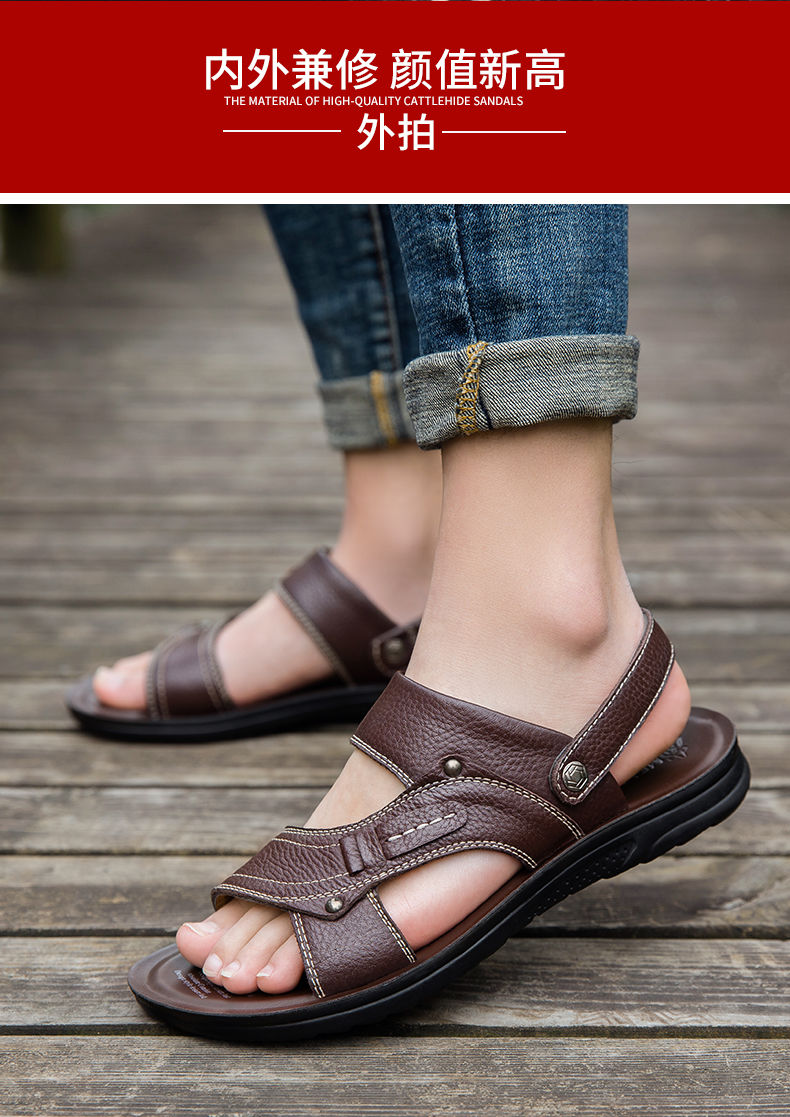 頭層牛皮涼鞋男士涼鞋真皮夏季透氣涼鞋防滑沙灘鞋涼拖鞋男