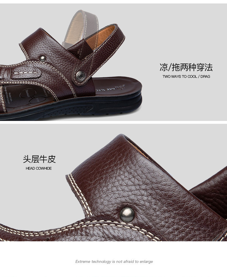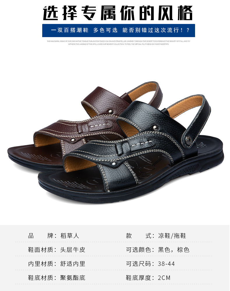 商品名稱:頭層牛皮涼鞋男士涼鞋真皮夏季透氣涼鞋防滑沙灘鞋涼拖鞋男