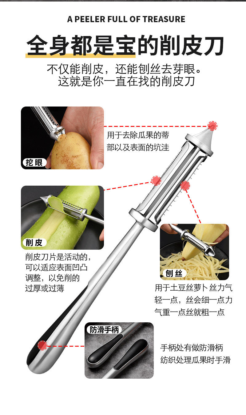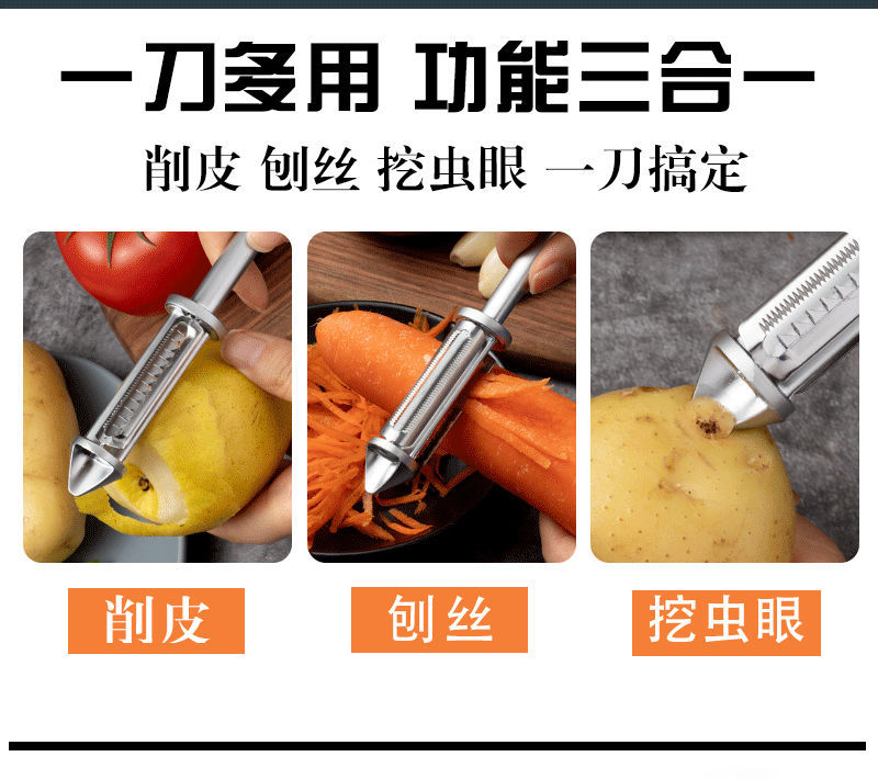 商品名稱:多功能削皮刀不銹鋼刮皮器水果刀家用廚房三合一瓜刨果蔬削皮神器