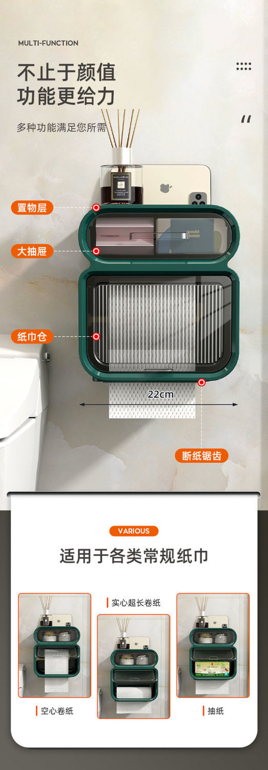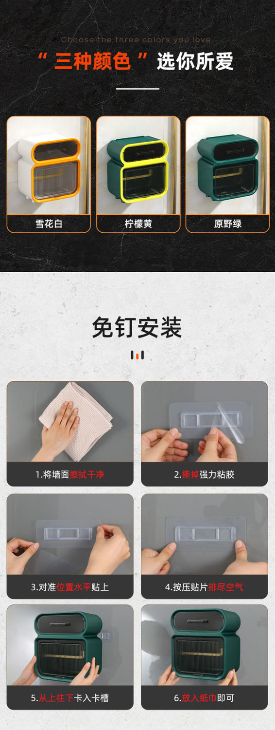 商品名稱:衛(wèi)生間抽紙盒紙巾盒家用壁掛免打孔廁所防水卷紙衛(wèi)生紙置物架