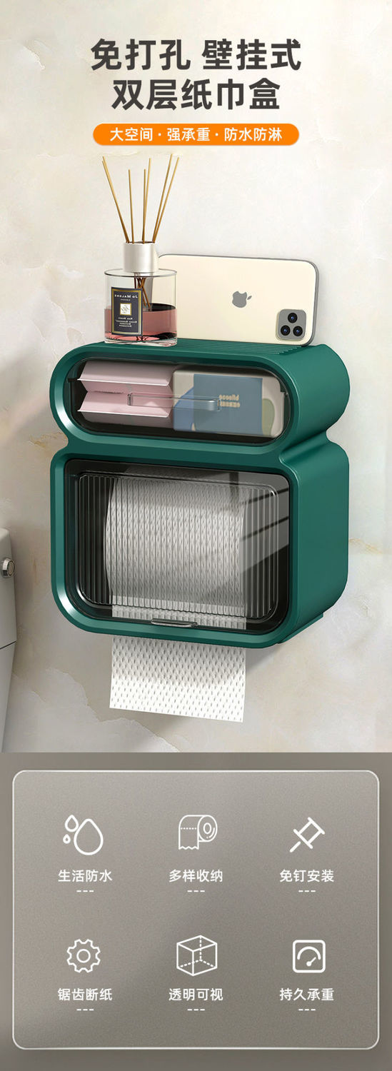 衛(wèi)生間抽紙盒紙巾盒家用壁掛免打孔廁所防水卷紙衛(wèi)生紙置物架