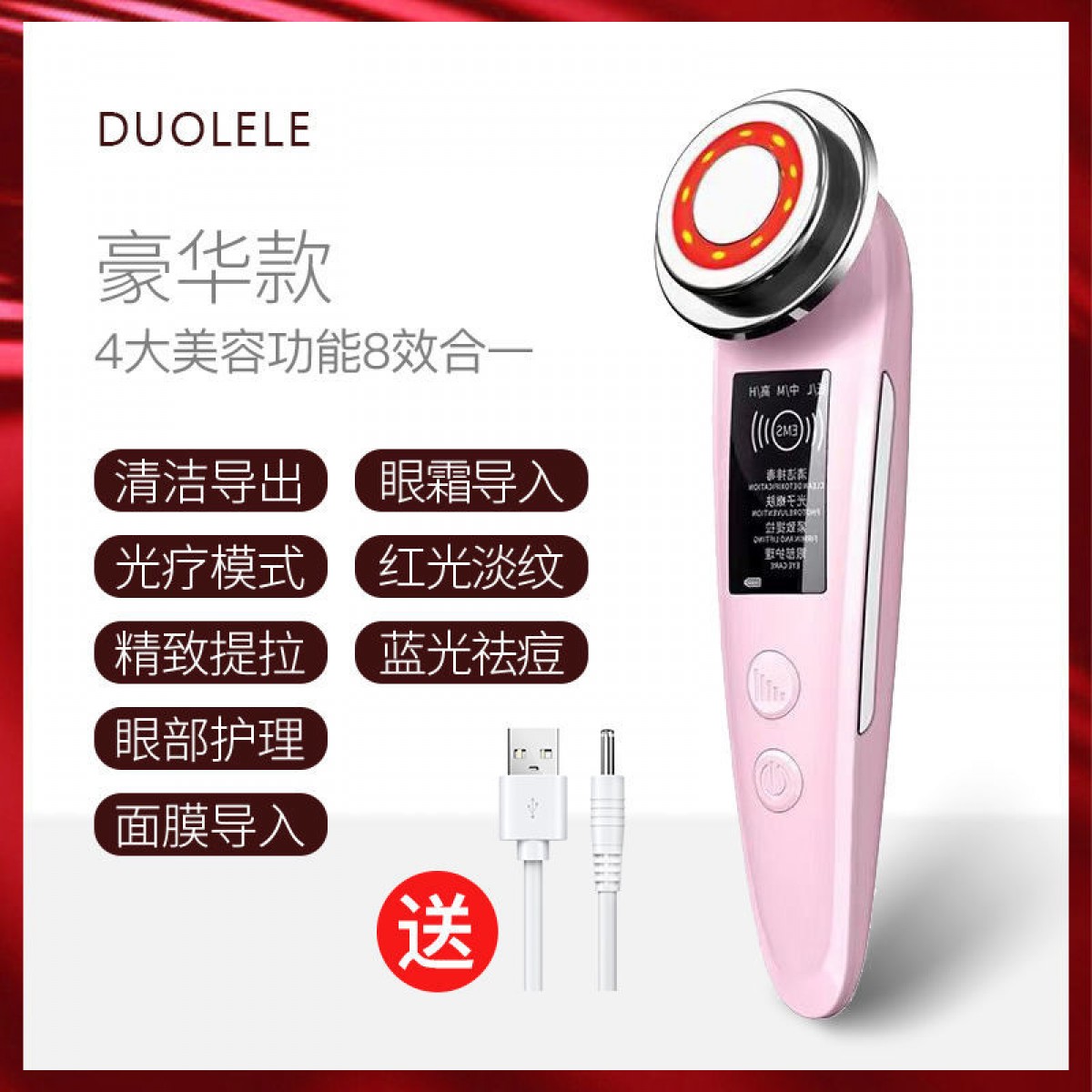 商品名稱:導(dǎo)入儀臉部按摩器多功能精華導(dǎo)入美容儀清潔排毒潔面V臉提拉家用