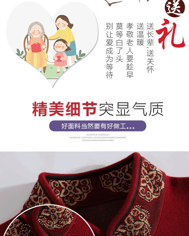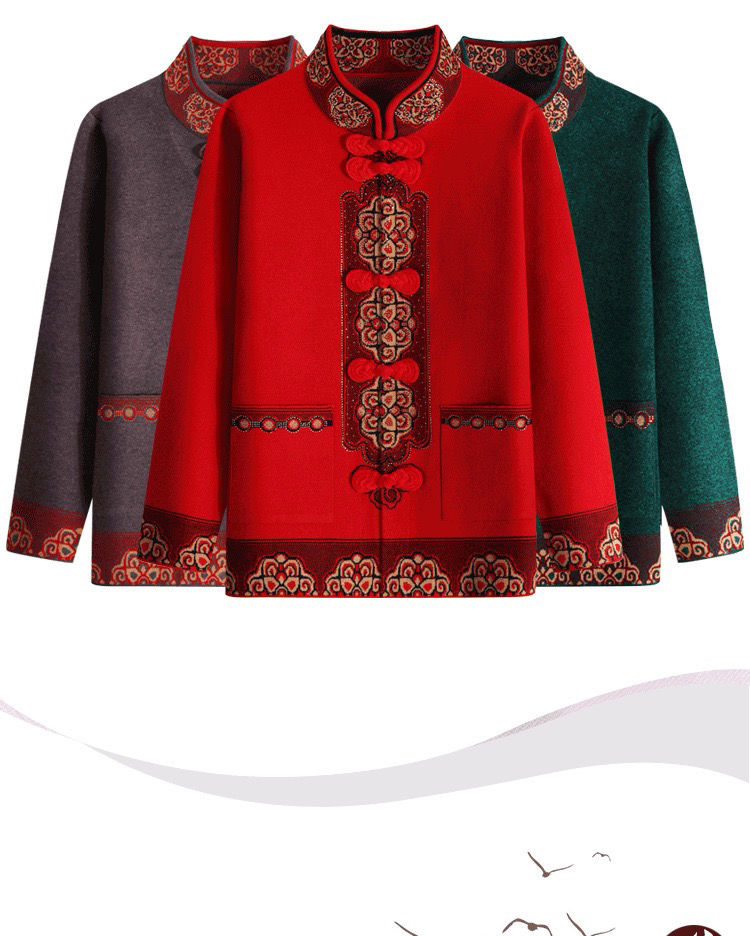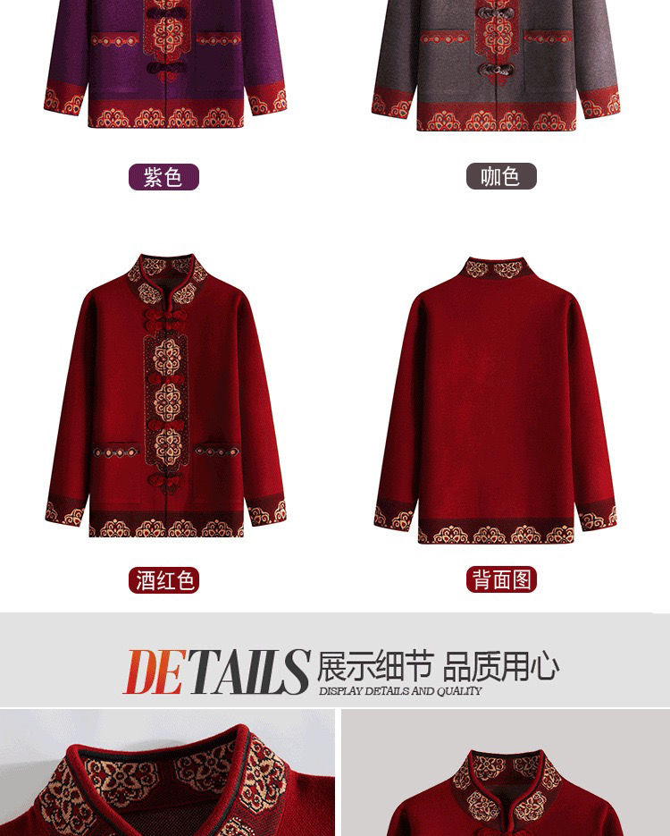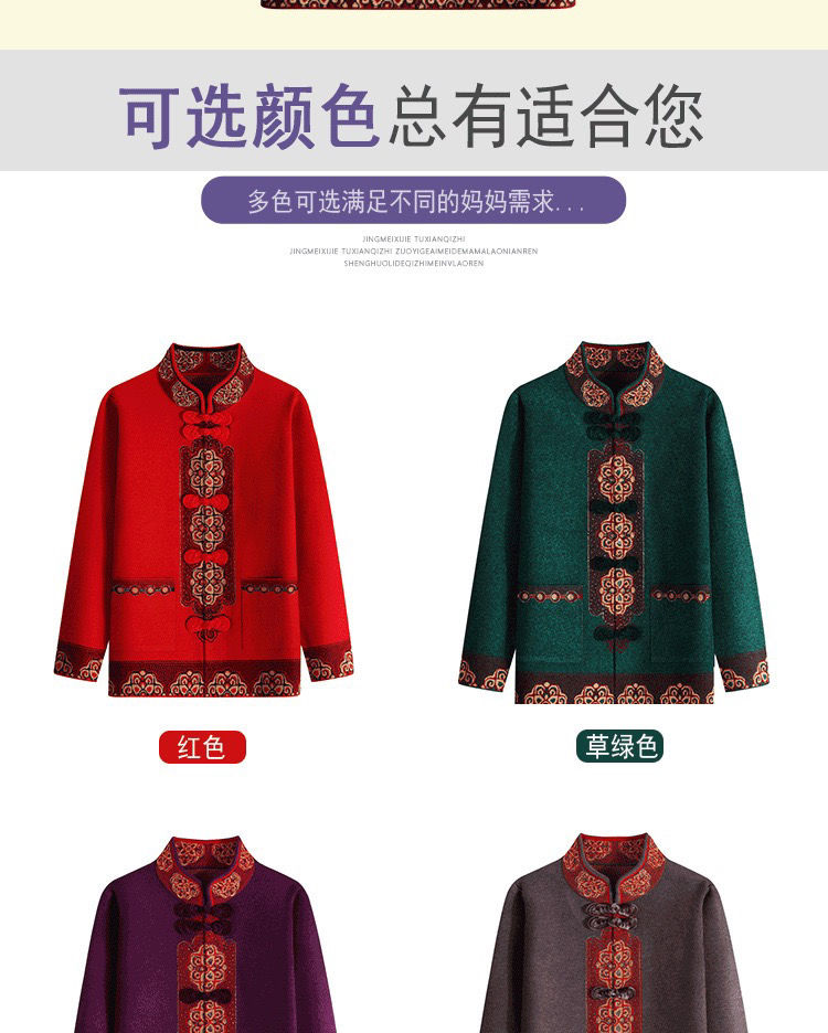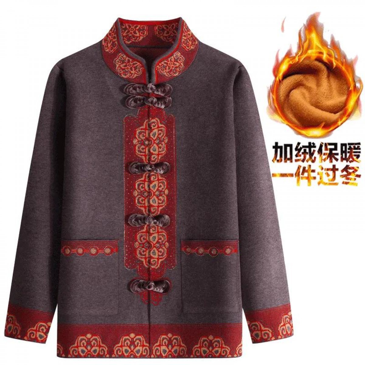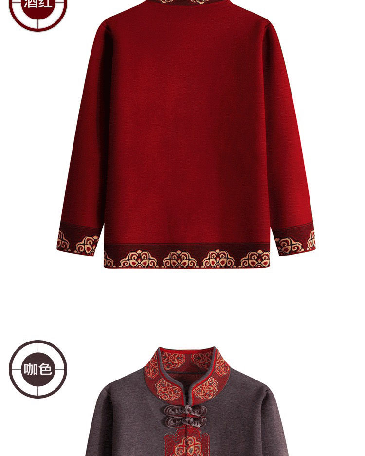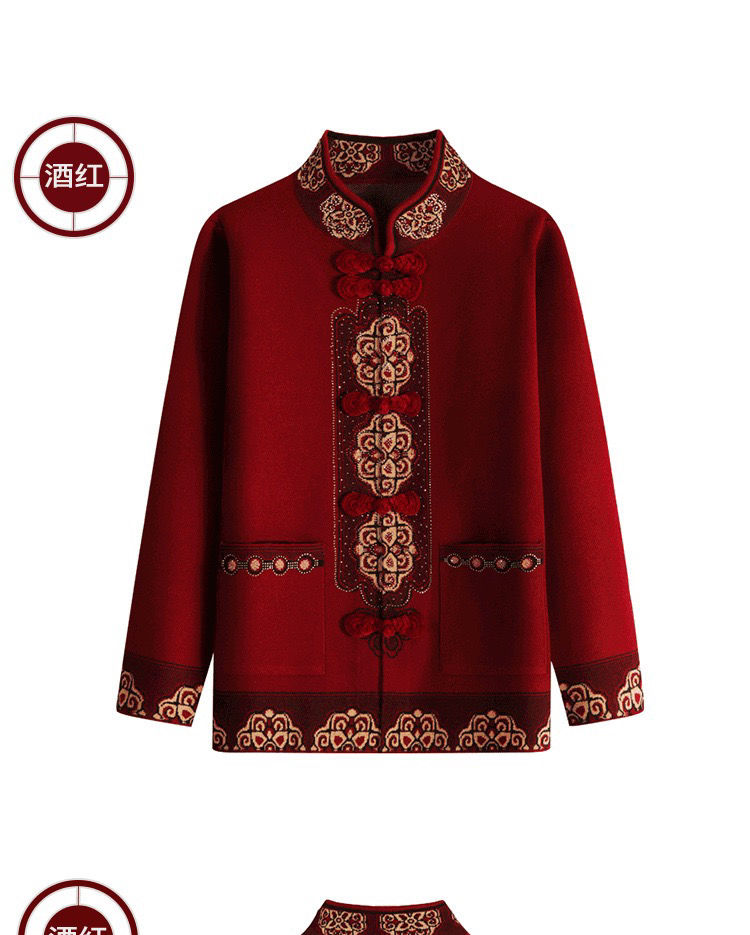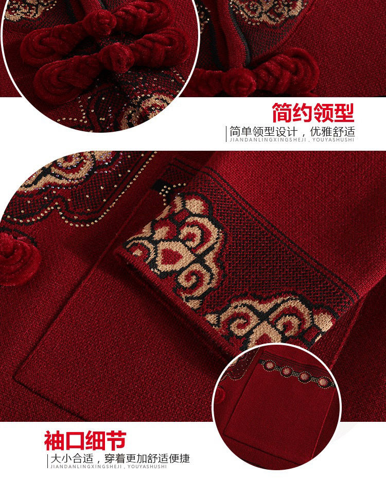 商品名稱:中老年加絨毛衣唐裝女媽媽裝上衣針織開衫秋冬裝保暖外套奶奶裝