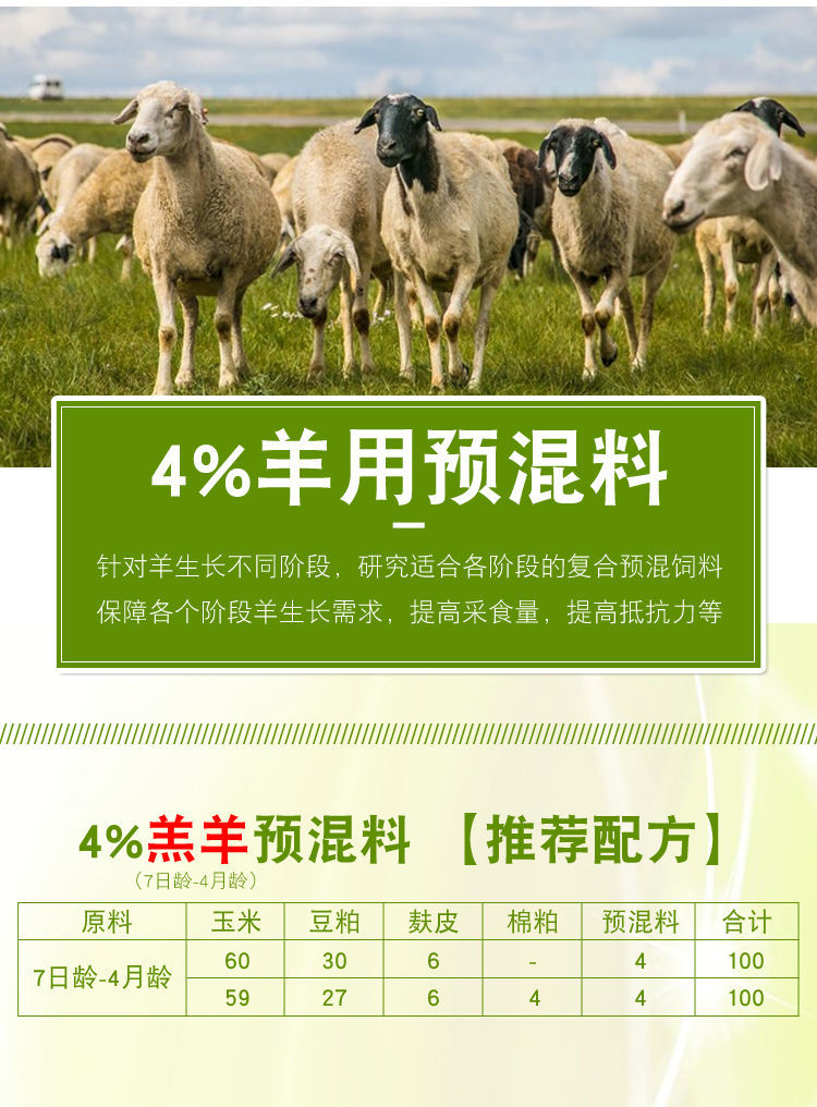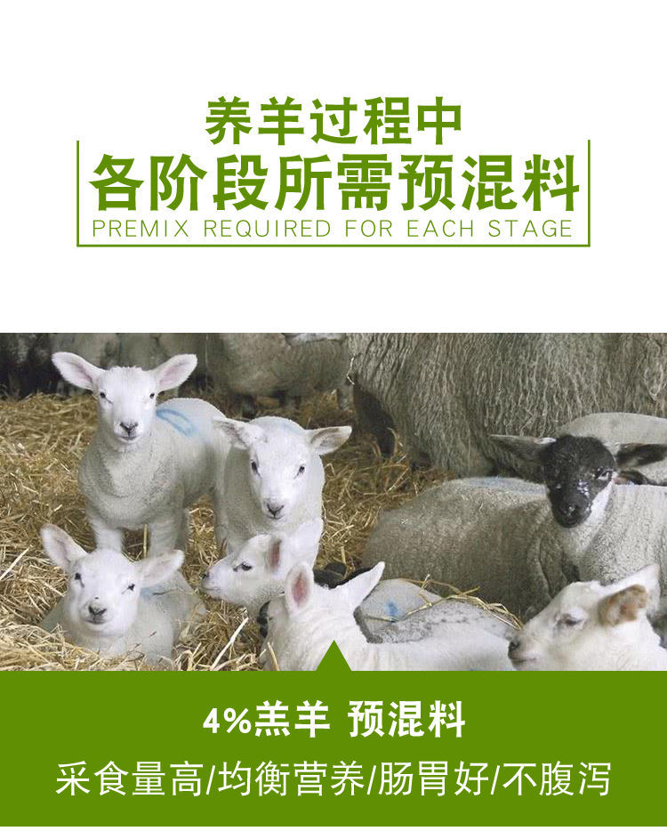商品名稱:4%羊預混料專用料羔羊育肥羊肉羊預混料基礎妊娠哺乳母羊預混料