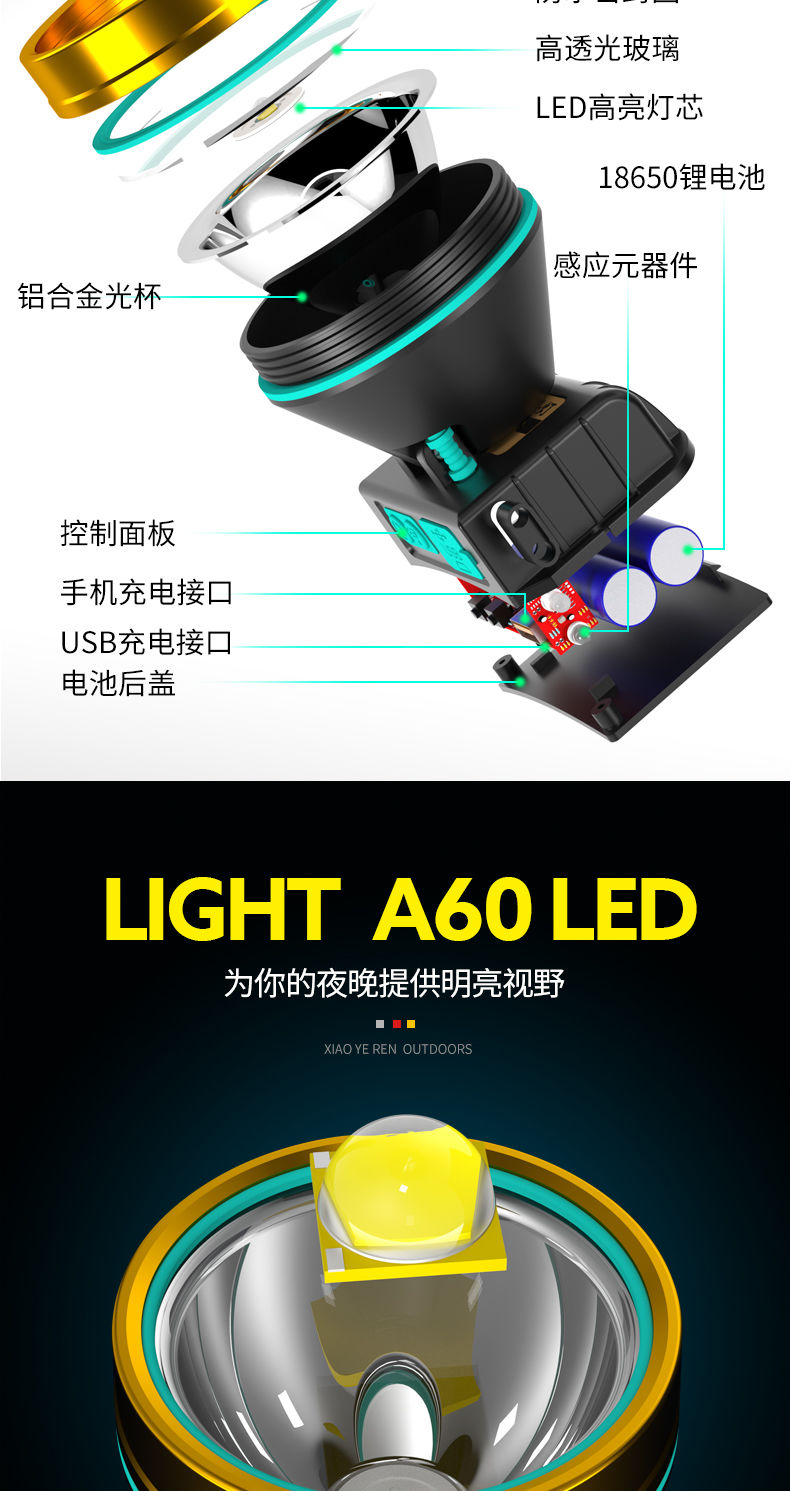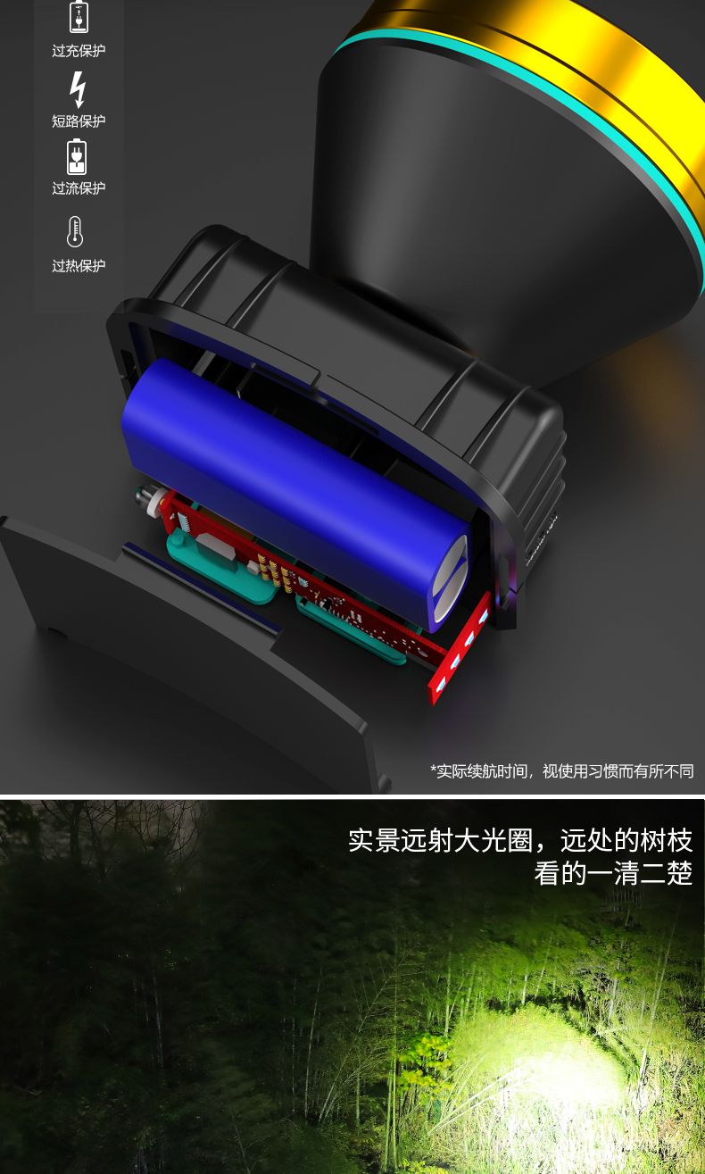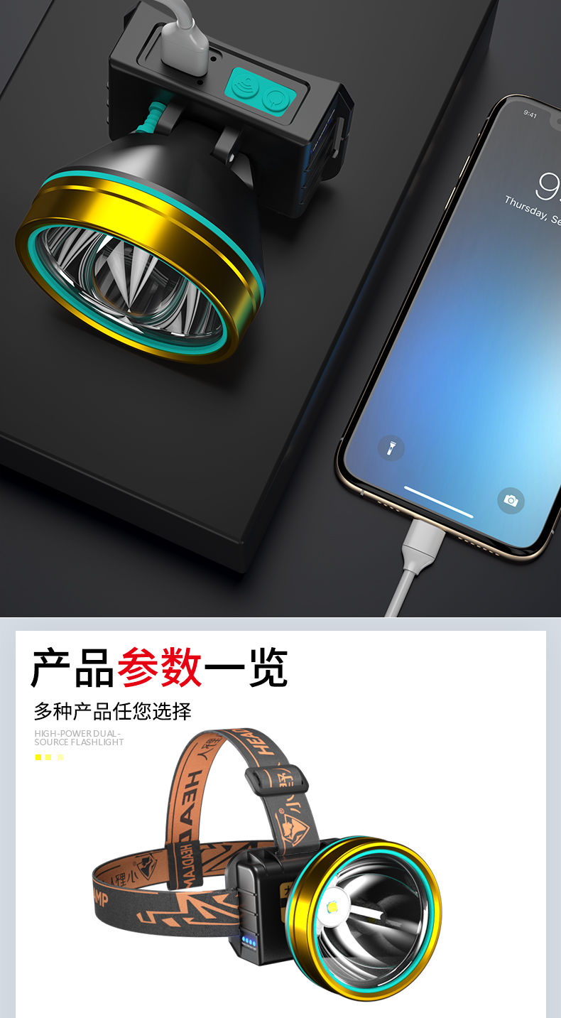 商品名稱:led頭燈強光可充電超亮防水軍家用遠射頭戴式手電筒小夜釣魚礦燈