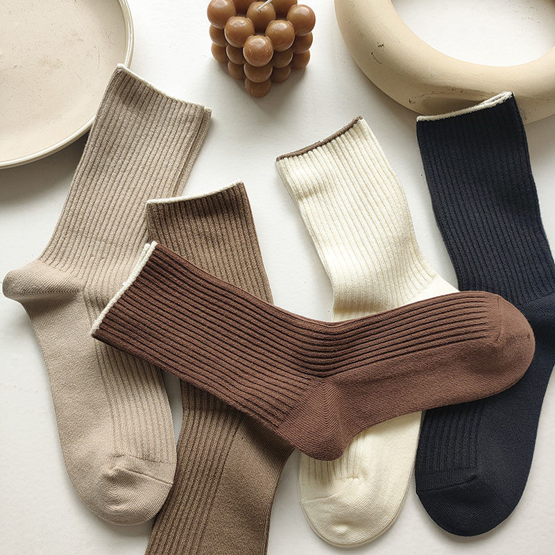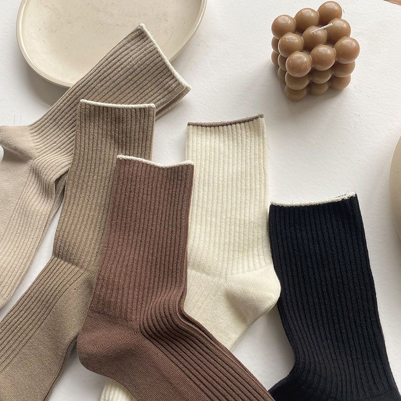 商品名稱:雙針純色襪子女韓版中筒襪ins潮百搭秋季可愛日系堆堆襪女士長襪