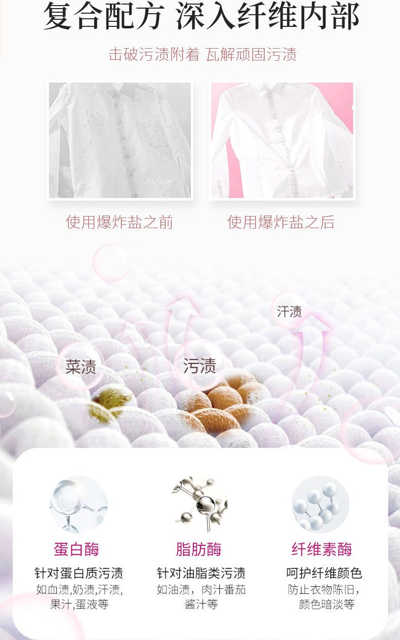 商品名稱(chēng):爆炸鹽洗衣去污漬強(qiáng)嬰幼兒彩漂粉彩色白色衣物去漬去黃增白漂白劑