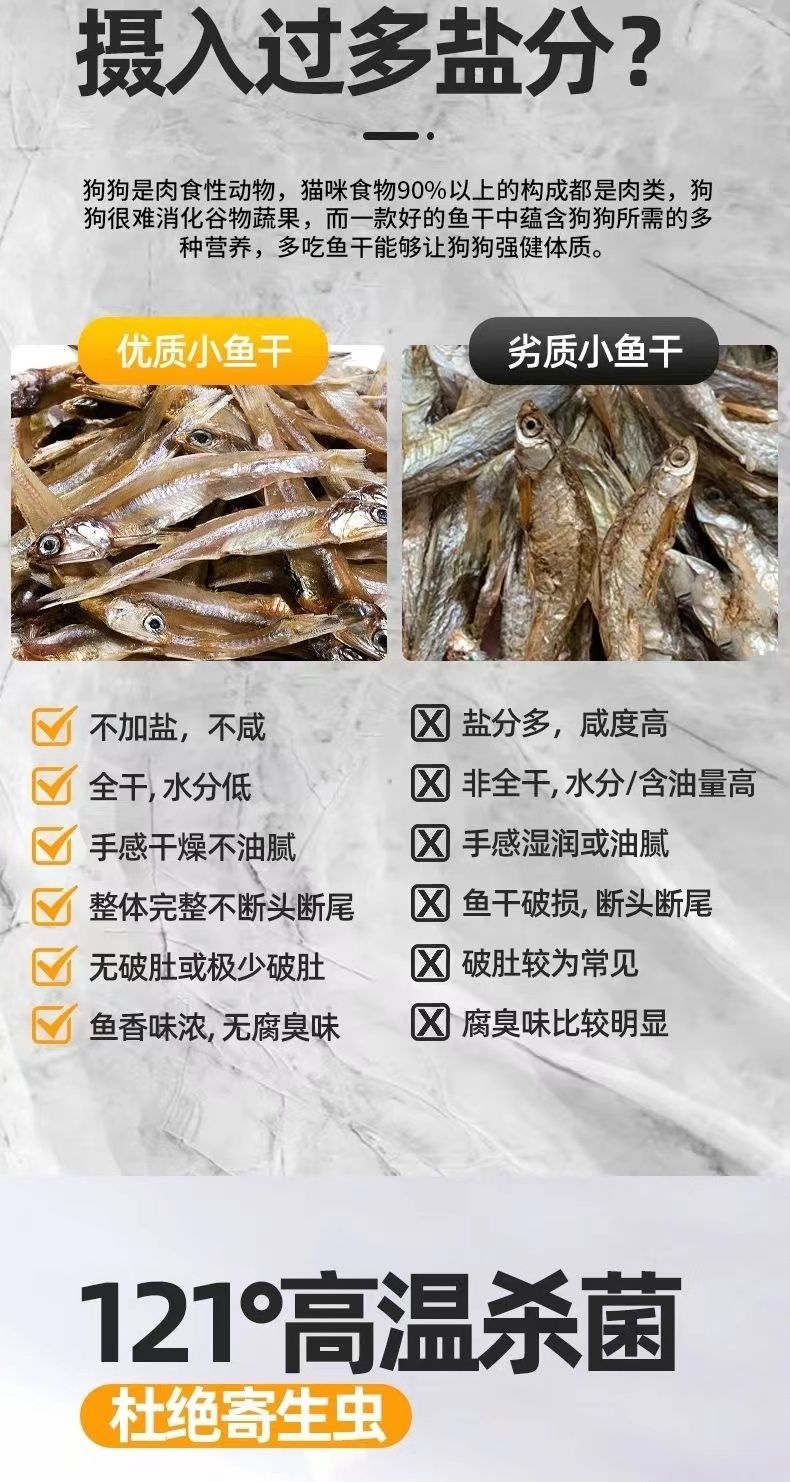 商品名稱:寵物零食小魚干狗吃淡干無鹽營養(yǎng)補鈣增肥發(fā)腮小魚干狗零食大包裝