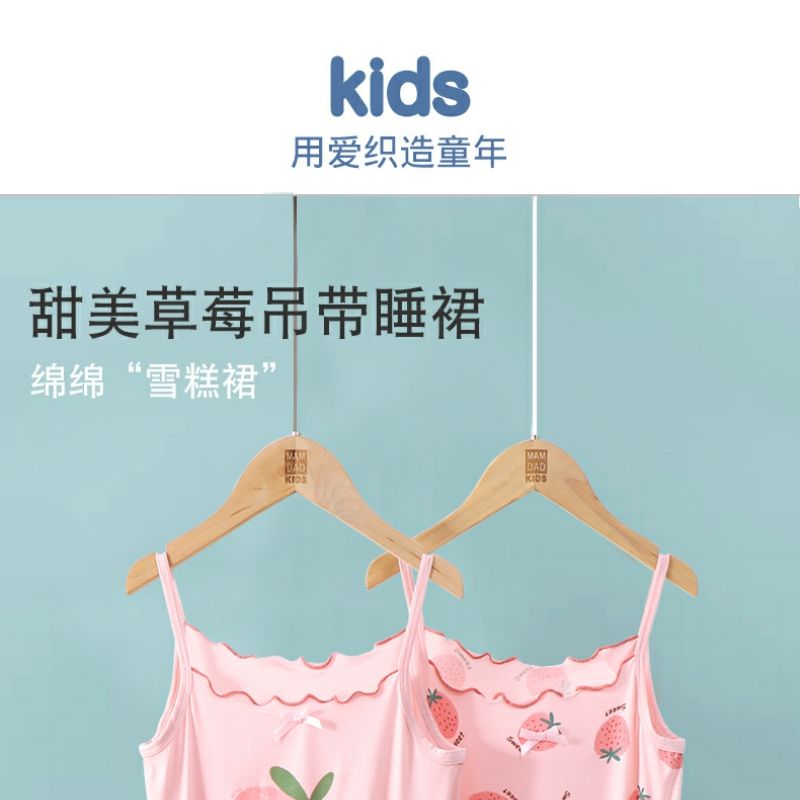 商品名稱:女童睡裙2023新款夏季莫代爾兒童吊帶睡衣薄款公主女孩冰絲無袖裙