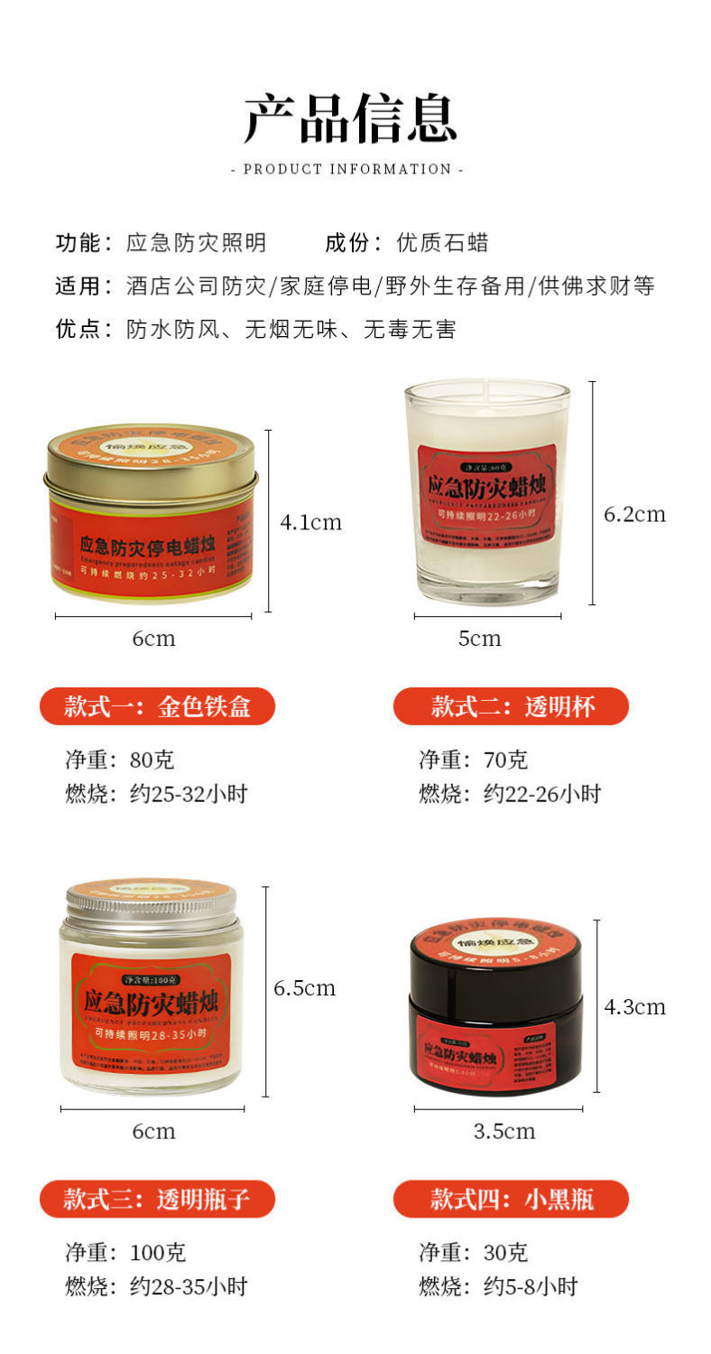 商品名稱:應(yīng)急防災(zāi)蠟燭家用停電緊急照明蠟燭環(huán)保無煙無味戶外防風(fēng)防水蠟燭