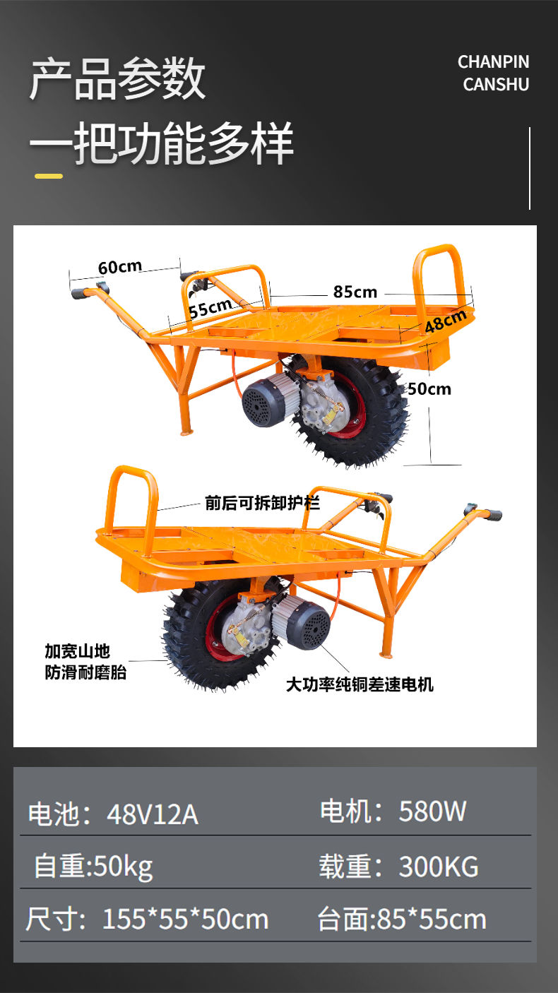 商品名稱:電動獨輪雞公車 油動手推車小型爬山虎 農(nóng)用爬坡車山路果園老虎車