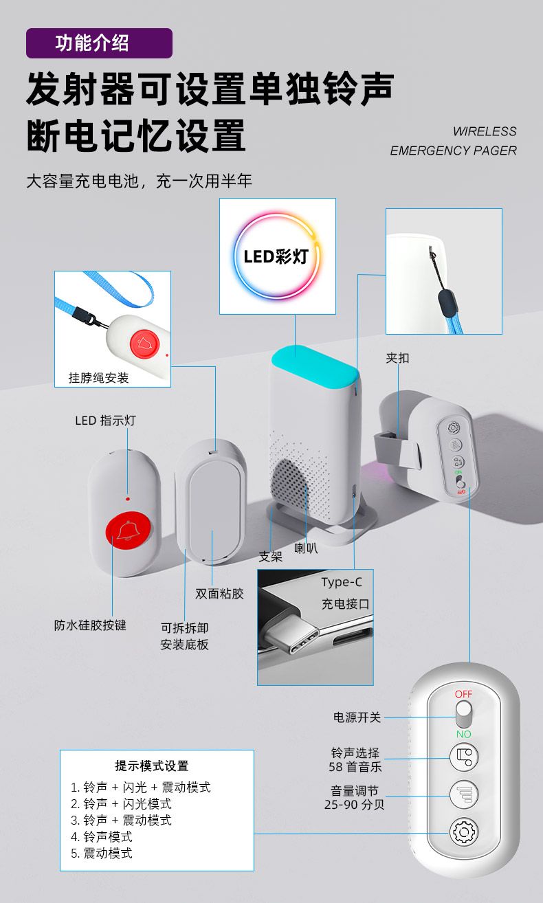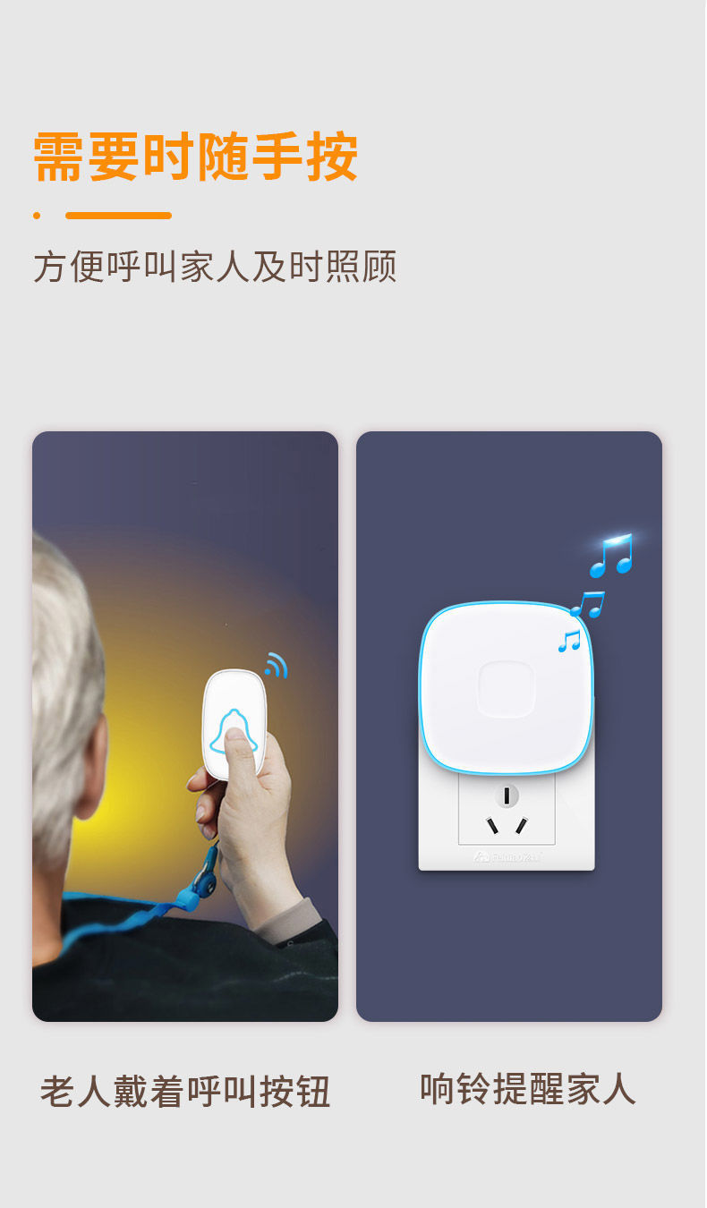 商品名稱:老人呼叫器無線家用病人門鈴遠(yuǎn)程遙控一鍵緊急報(bào)警求救平安鐘按鈴