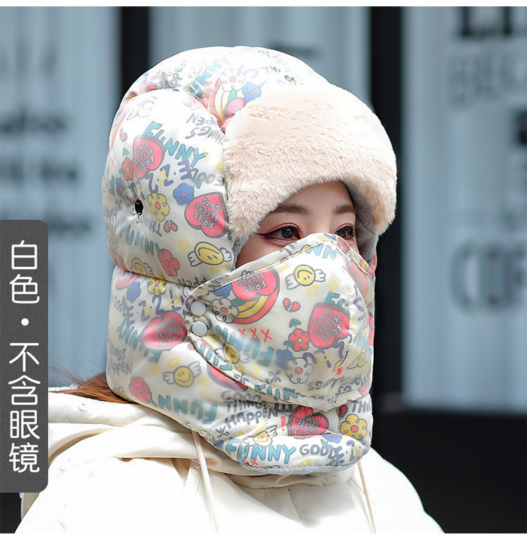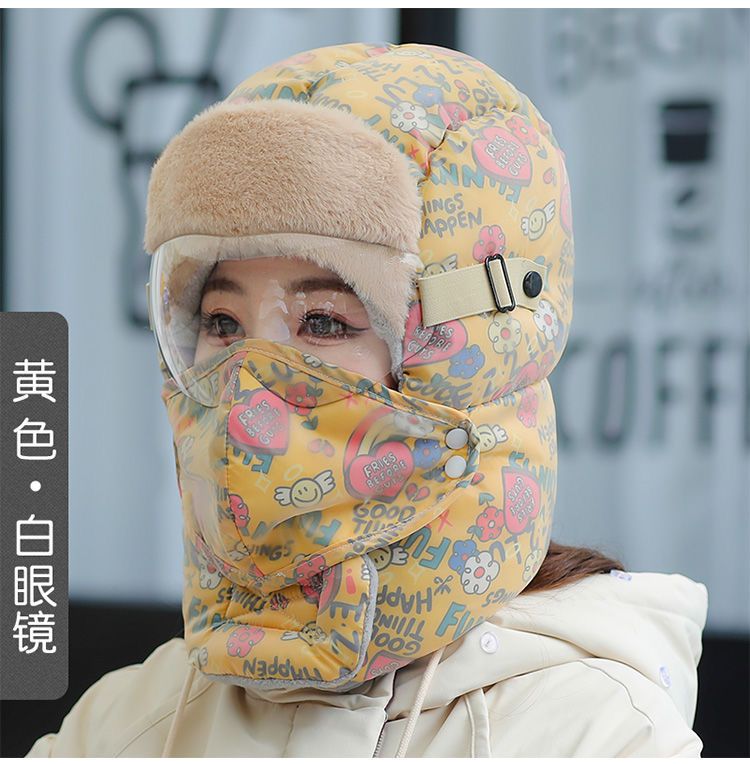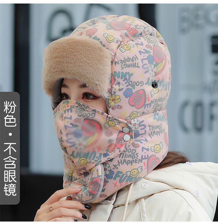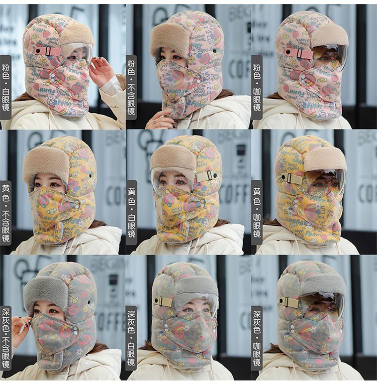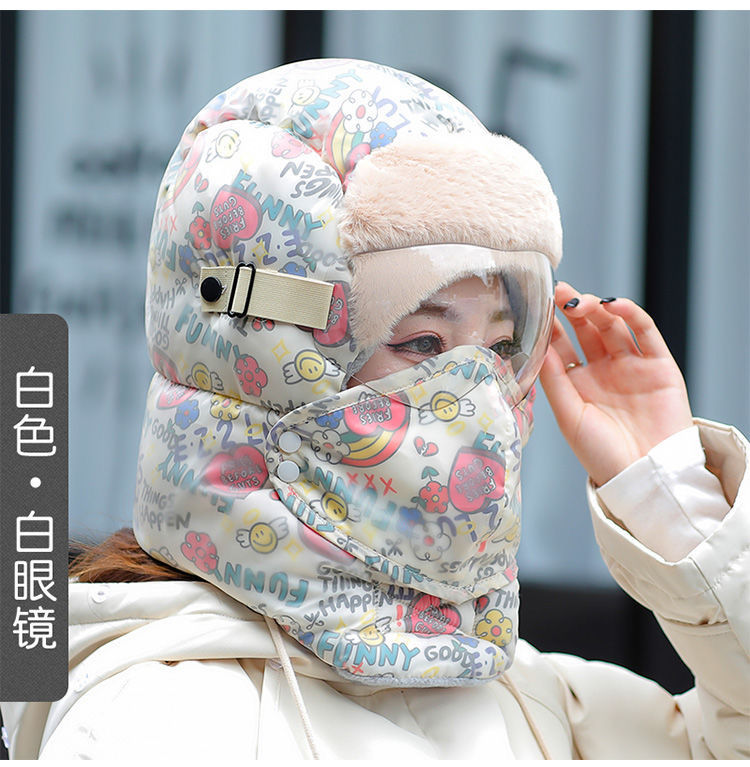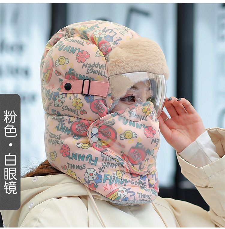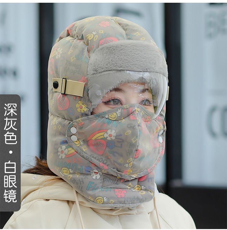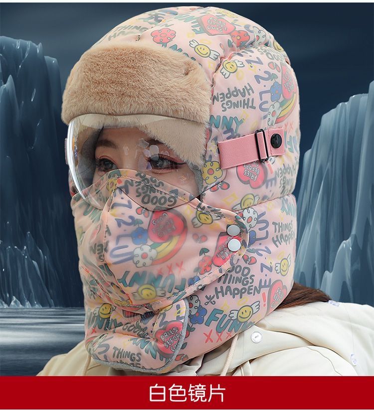 商品名稱(chēng):眼鏡帽子一體圍脖雷鋒帽女冬款騎車(chē)加絨加厚保暖防風(fēng)防寒時(shí)尚洋氣