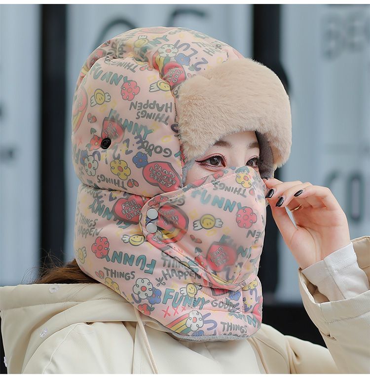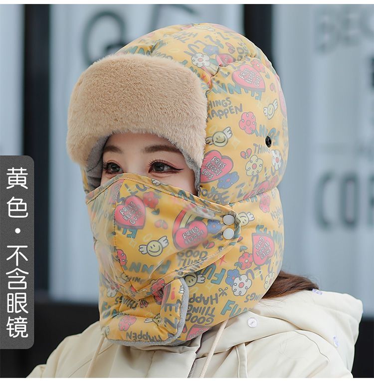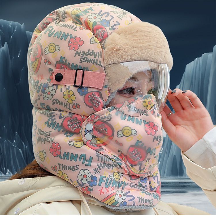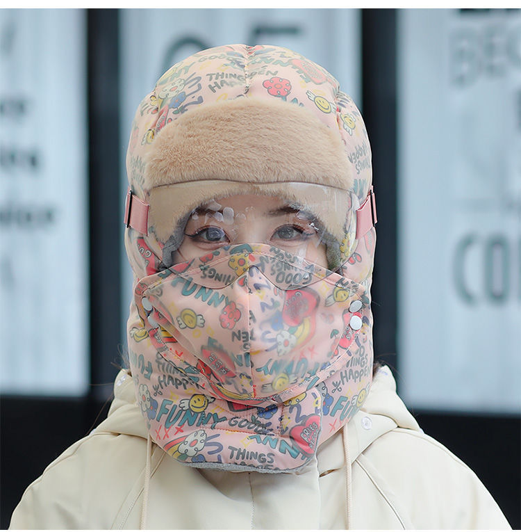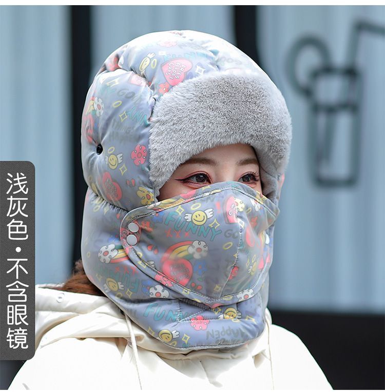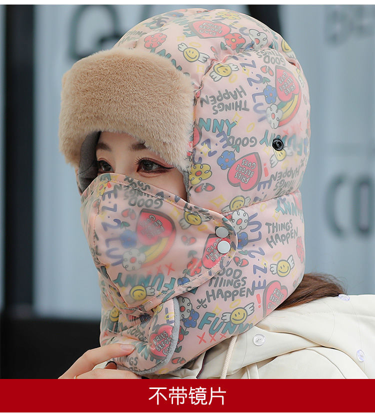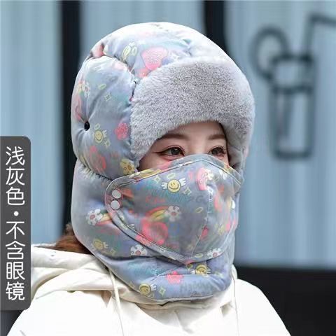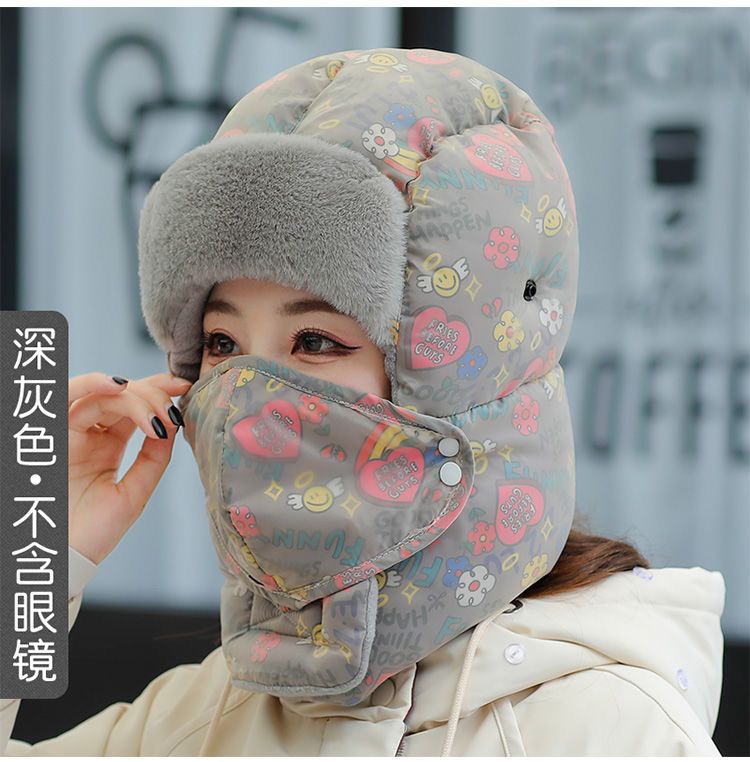 商品名稱(chēng):眼鏡帽子一體圍脖雷鋒帽女冬款騎車(chē)加絨加厚保暖防風(fēng)防寒時(shí)尚洋氣