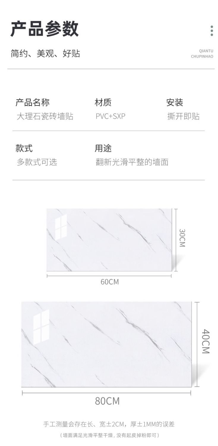 商品名稱:返潮掉灰大理石瓷磚墻紙自粘防水墻貼護墻板墻面翻新改造裝飾墻圍