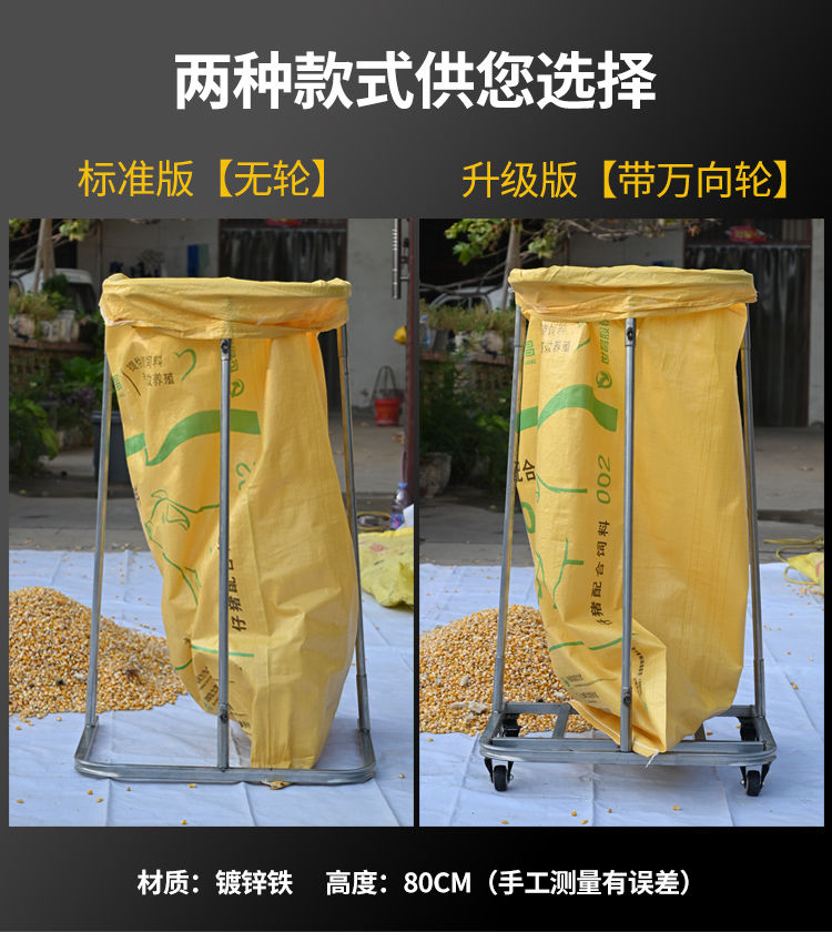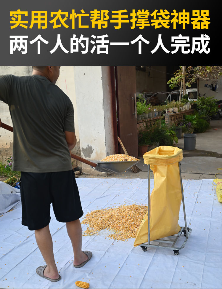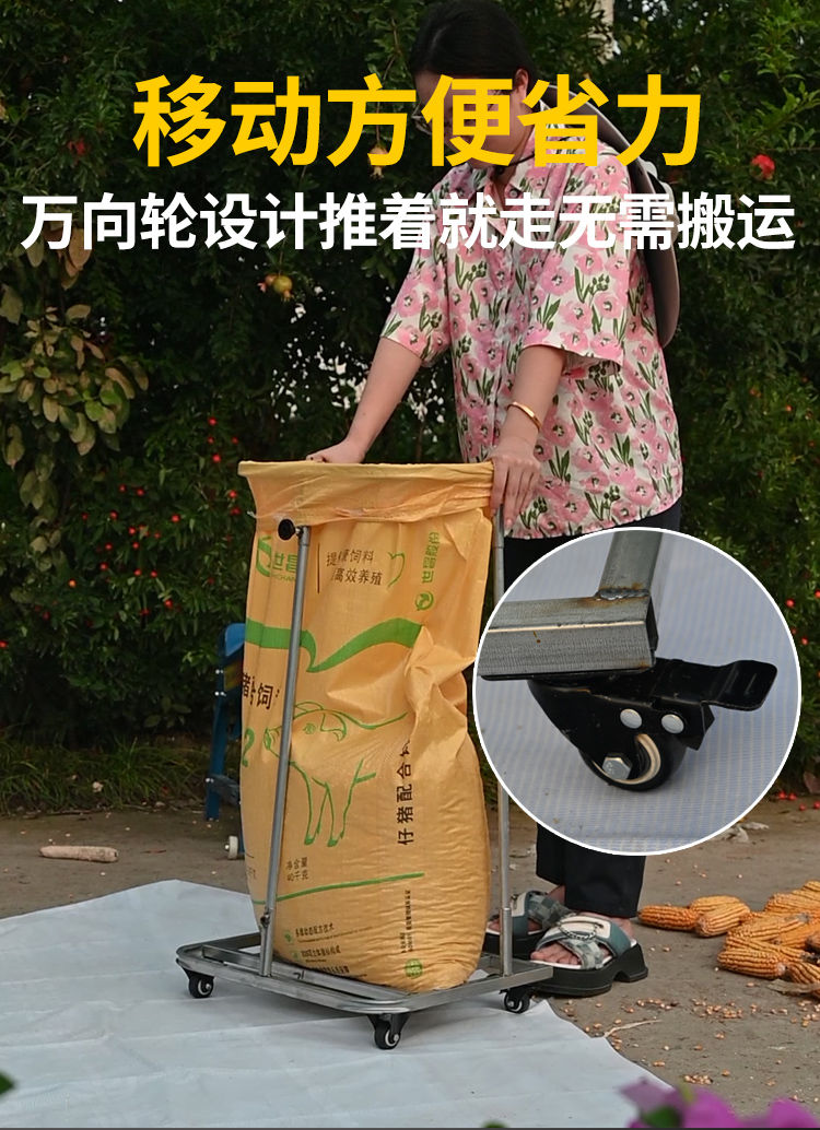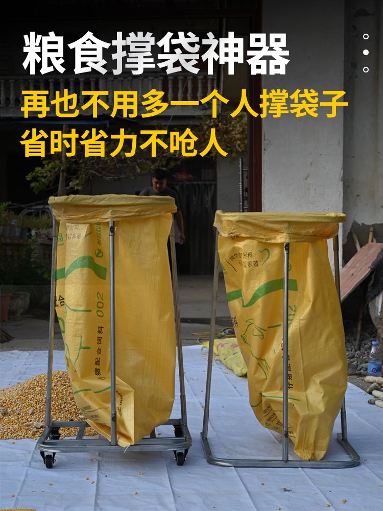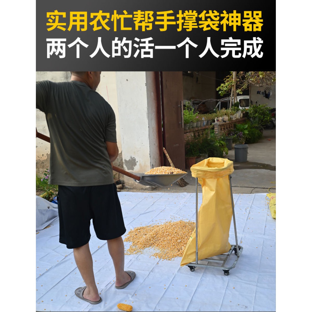 農(nóng)用糧食裝袋神器曬場(chǎng)收谷玉米撐袋器移動(dòng)打糧撐袋子帶滑輪支撐架