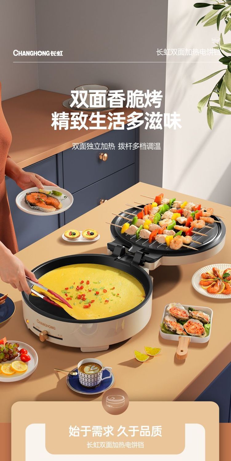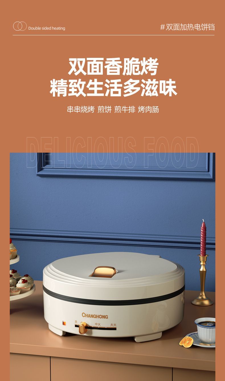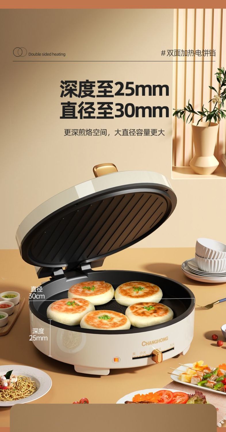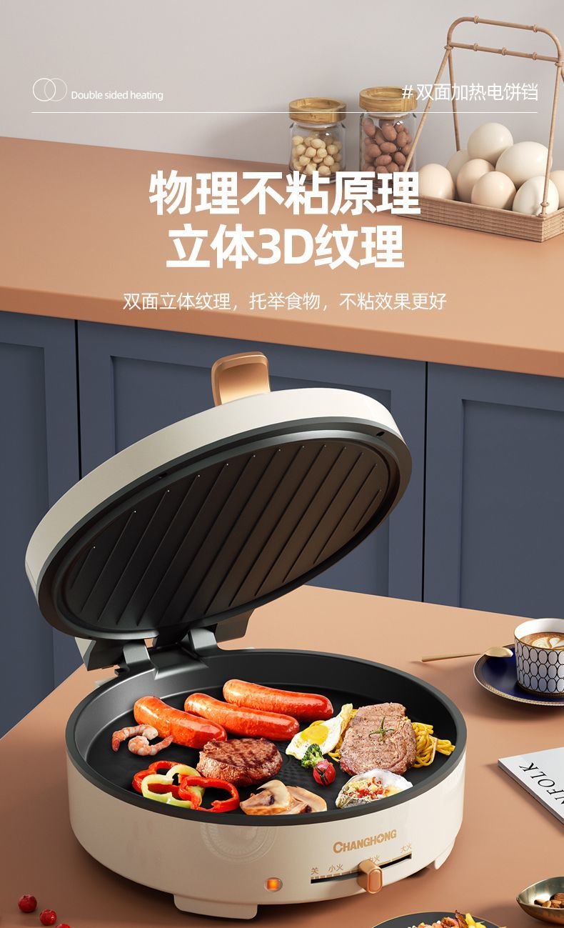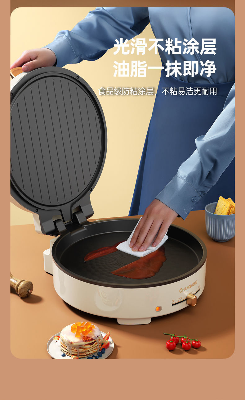 商品名稱:長虹官方新款電餅鐺雙面加熱電燒烤爐家用烤肉鍋烤盤烙餅鍋煎餅機