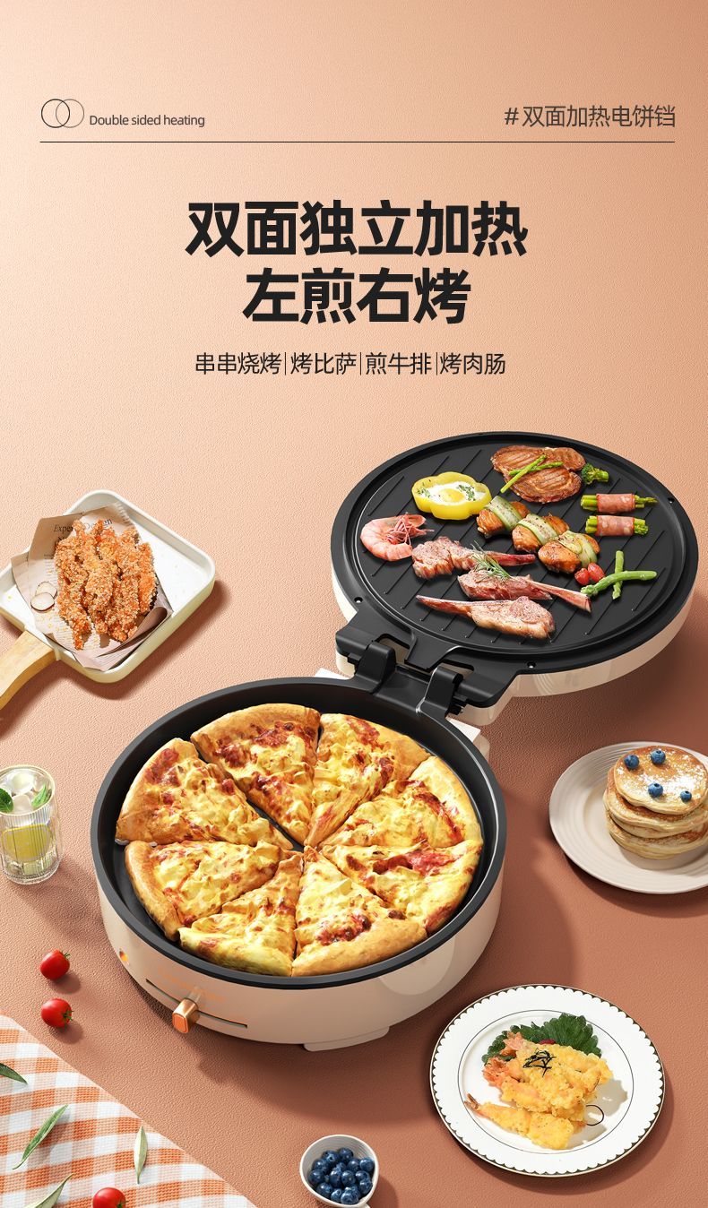 長虹官方新款電餅鐺雙面加熱電燒烤爐家用烤肉鍋烤盤烙餅鍋煎餅機