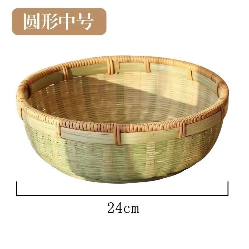 商品名稱:竹編收納筐家用圓形藤編饅頭竹筐水果籃頭層竹青編織竹制品竹籃子