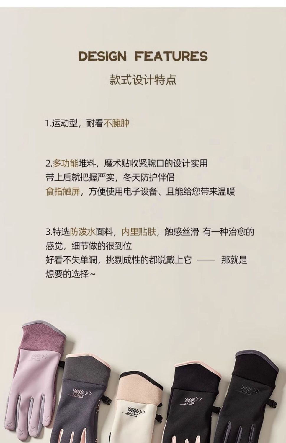 商品名稱:德絨保暖手套女秋冬加絨防風騎車防滑觸屏防寒手套戶外運動輕量化