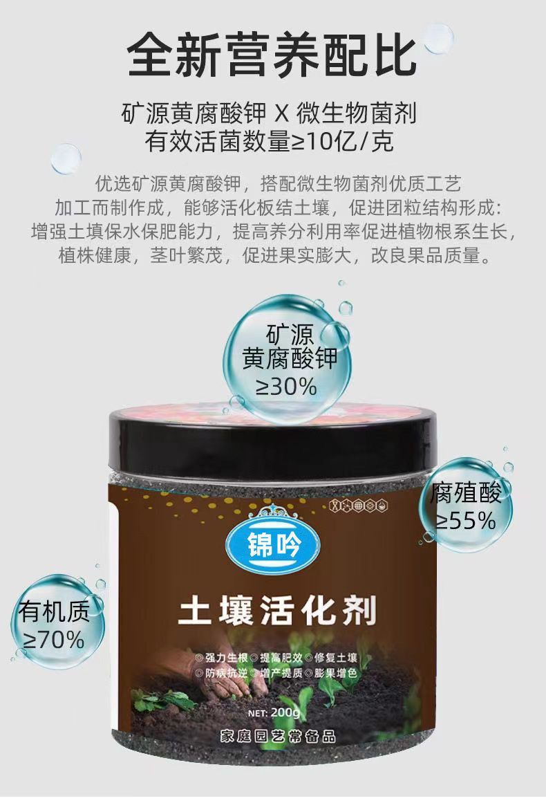 商品名稱:微生物土壤活化劑土壤活化寶礦源黃腐酸鉀菌肥調(diào)理土壤板結(jié)松土精
