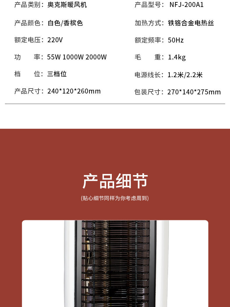 商品名稱(chēng):奧克斯暖風(fēng)機(jī)取暖家用辦公室冷暖兩用電暖氣迷你電暖器小太陽(yáng)室內(nèi)