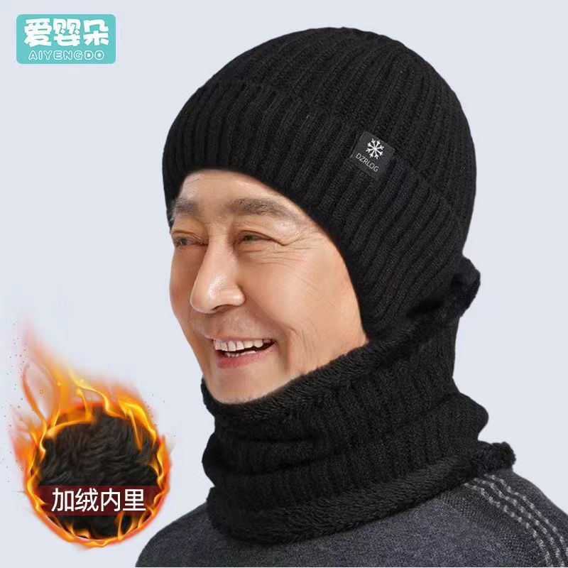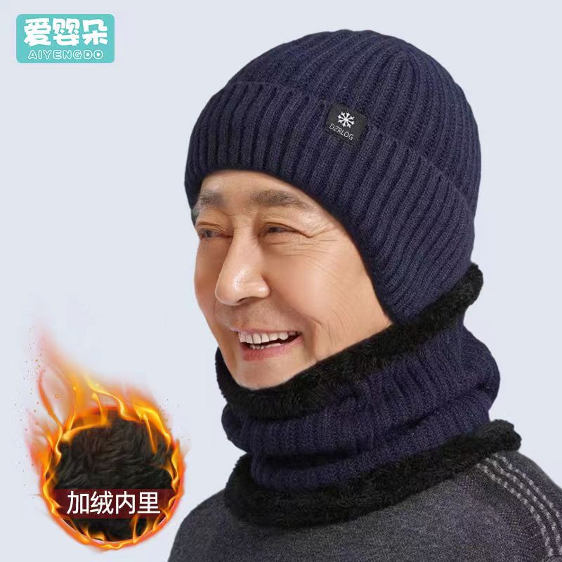 商品名稱:男士冬季帽子圍巾男款大頭圍老年人護耳朵秋冬季加厚加絨保暖老人