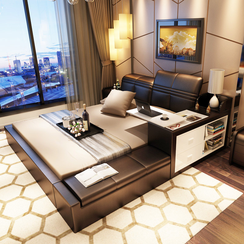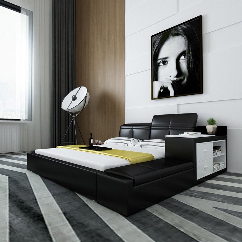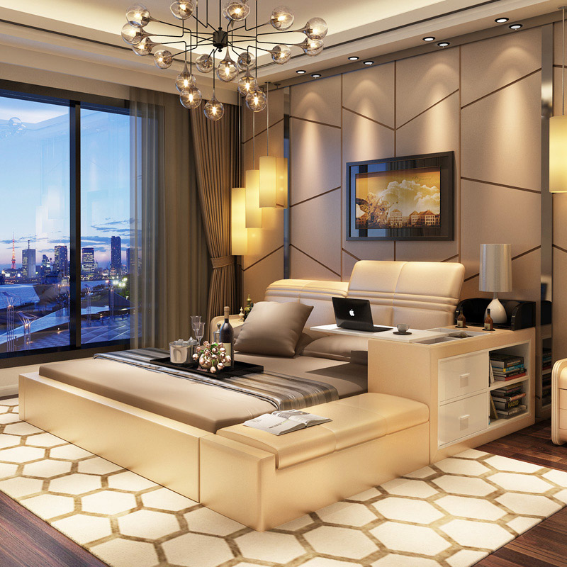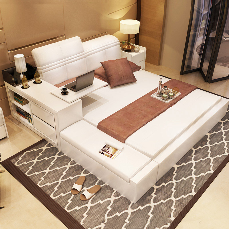 商品名稱(chēng):創(chuàng)意真皮床雙人床現(xiàn)代婚床1.8米1.5榻榻米床儲(chǔ)物床皮藝床軟床大床 床側(cè)儲(chǔ)物 升降靠背 雙ll價(jià)格 更低