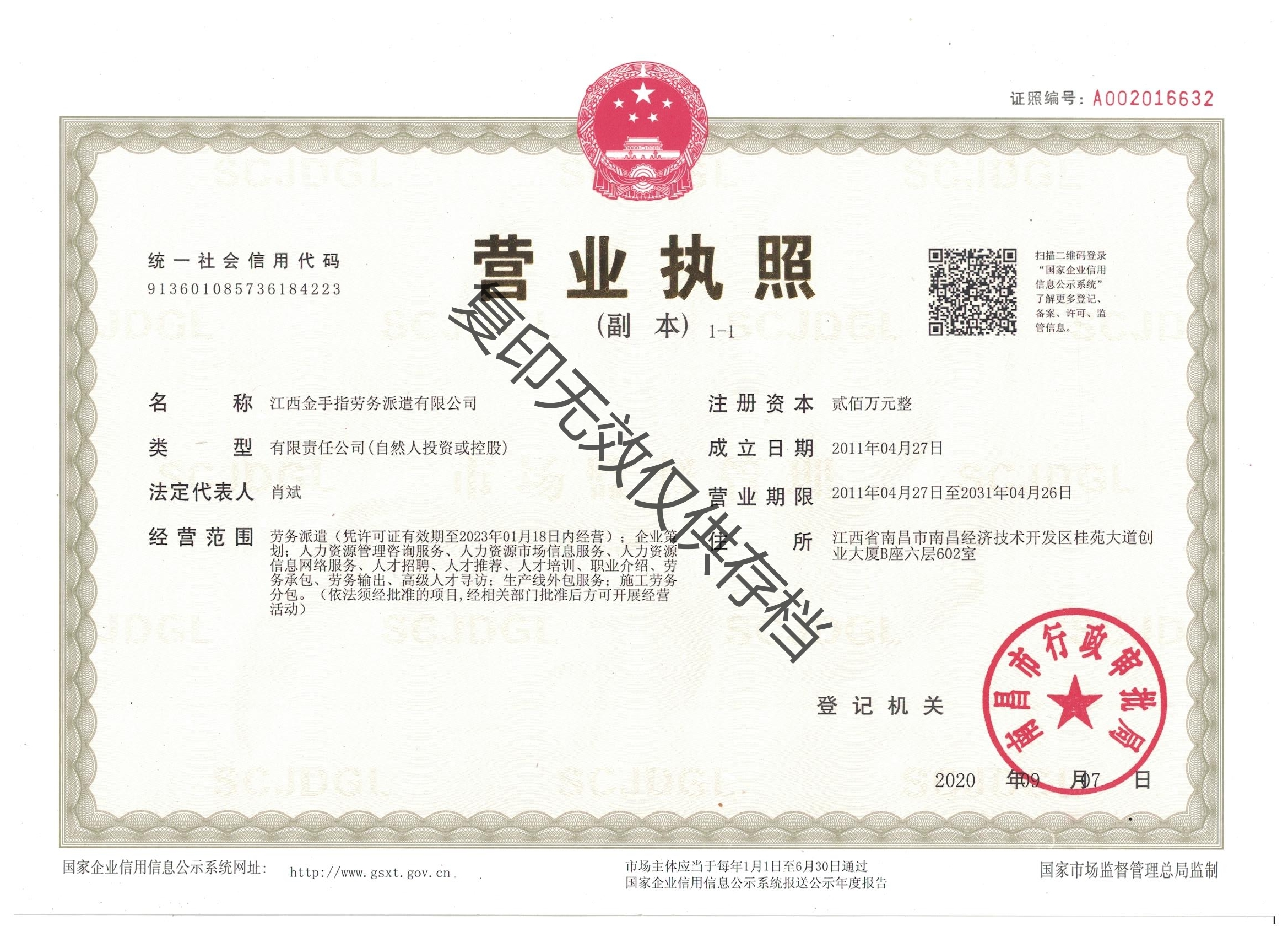 營業(yè)執(zhí)照注冊號: